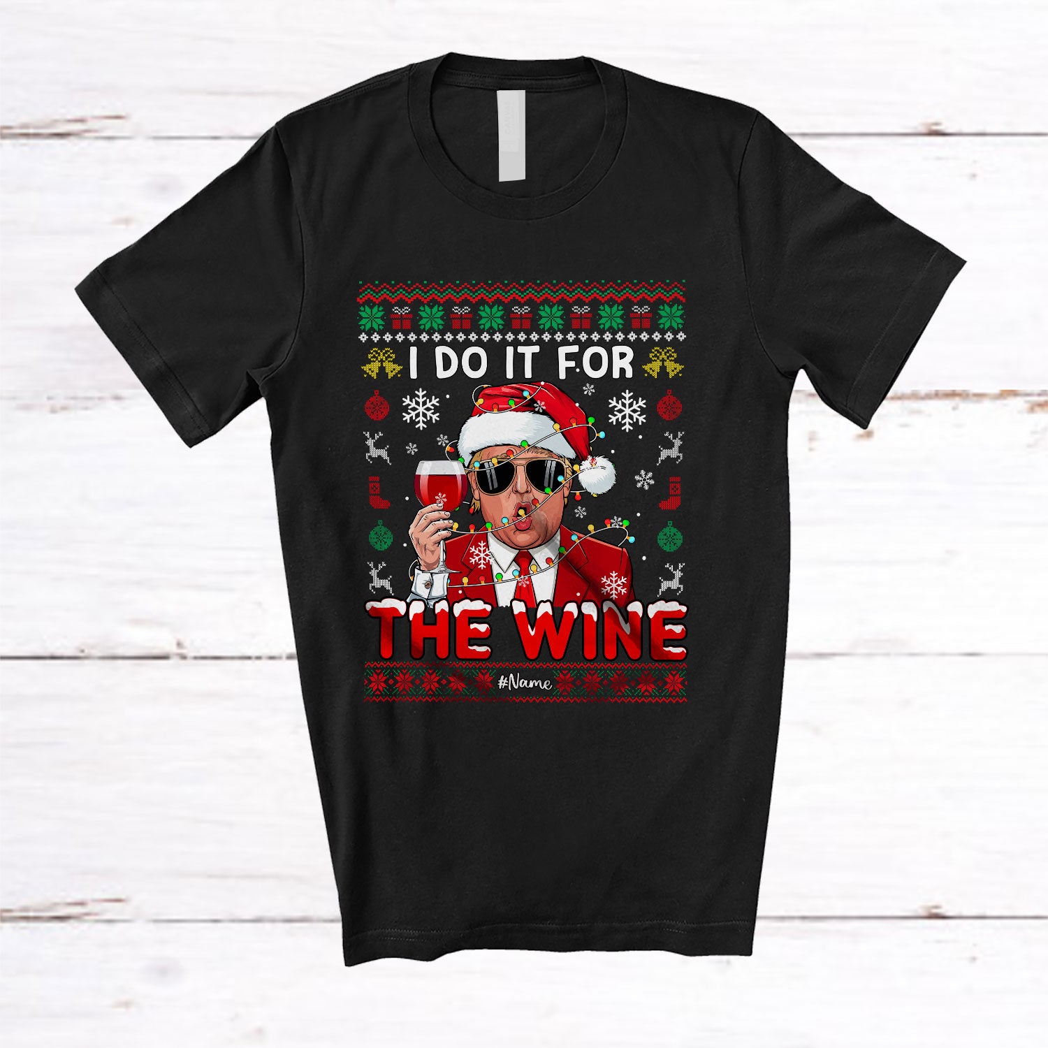 Personalized I Do It For The Wine; Sarcastic Christmas Naughty Santa Trump; Sweater Custom Name Drinking T-Shirt