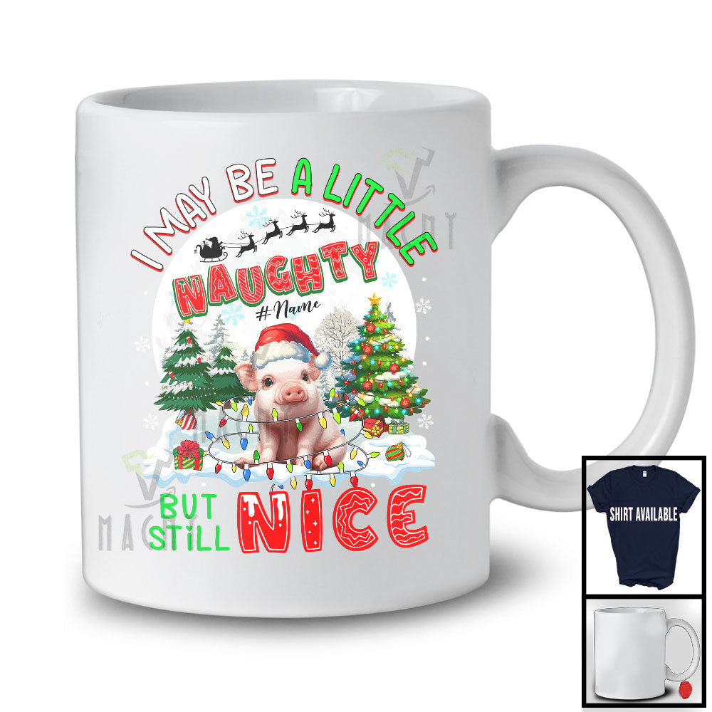 Personalized I May Be A Little Naughty; Humorous Christmas Custom Name Pig Santa T-Shirt