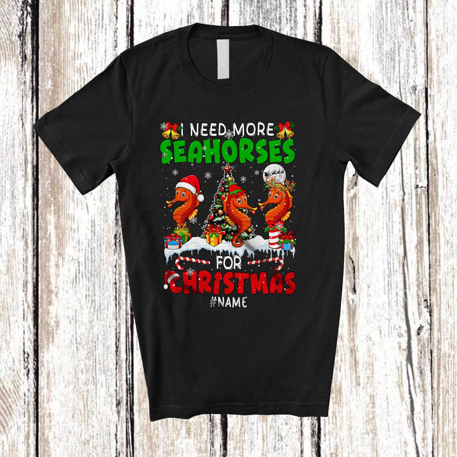 Personalized I Need More Seahorses For Christmas; Amusing X-mas Custom Name Sea Animal; Family T-Shirt