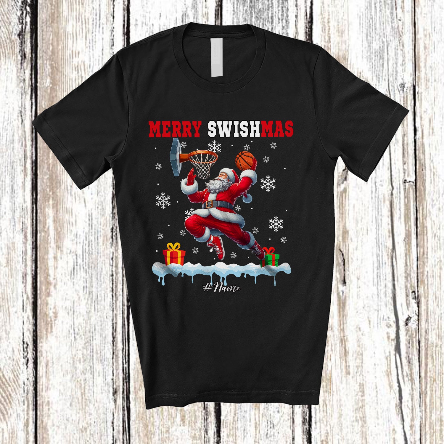 Personalized Merry Swishmas; Amusing Christmas Santa Playing Basketball Player; Sport Team T-Shirt