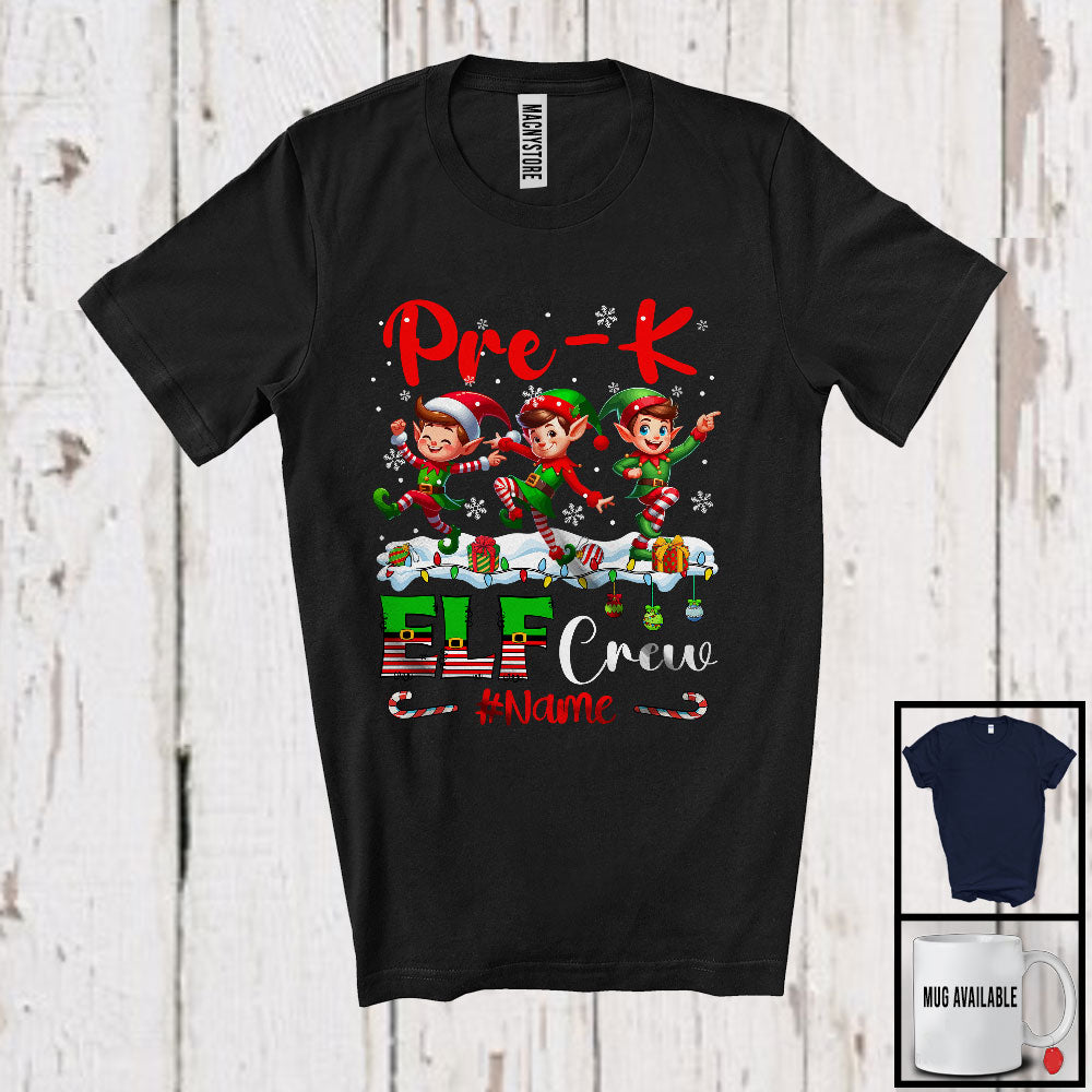 Personalized Pre-K ELF Crew; Awesome Christmas ELF; Custom Name Students Teacher T-Shirt