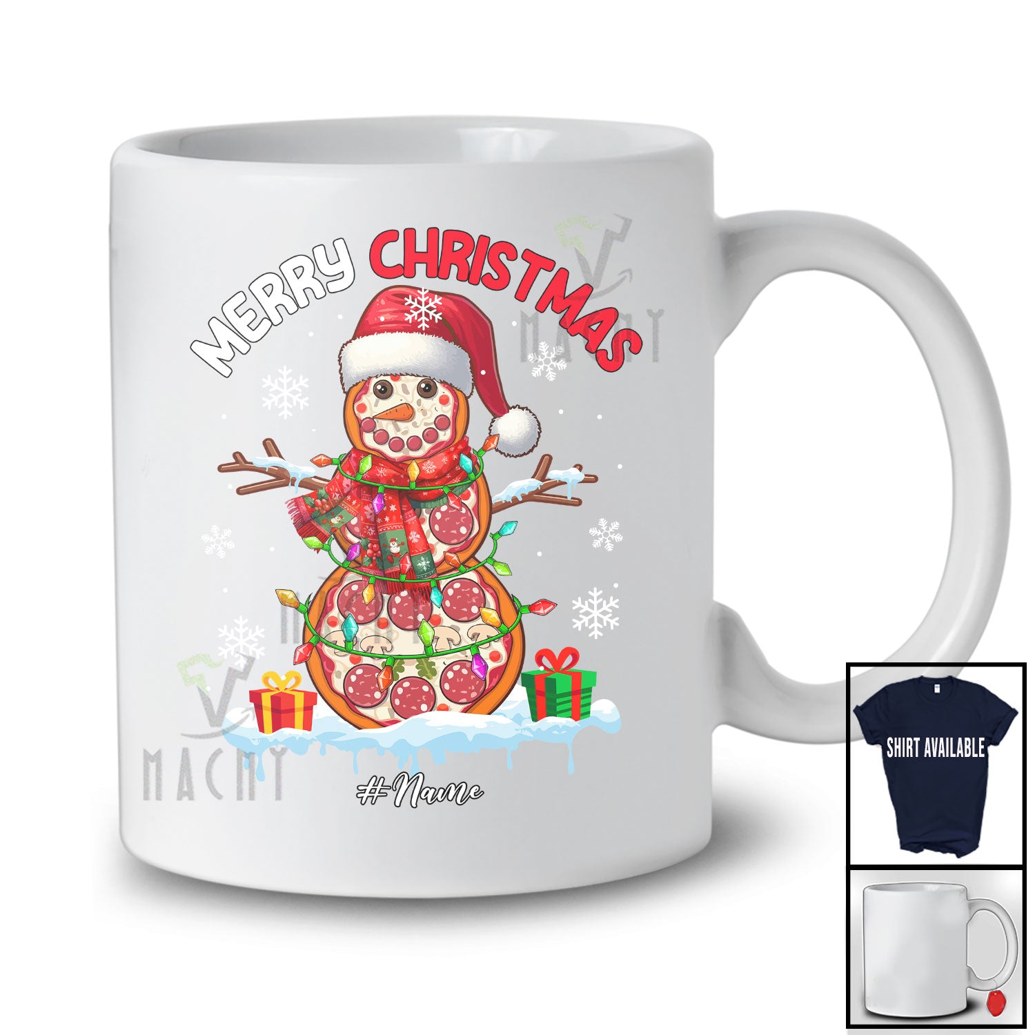 Personalized Santa Pizza As Snowman; Humorous Christmas Lights; Custom Name Lunch Lady Chef T-Shirt. This cotton t-shirt is a durable staple product with a classic fit. One of the most popular items, it has a relaxed style made for everyday and casual wear.
