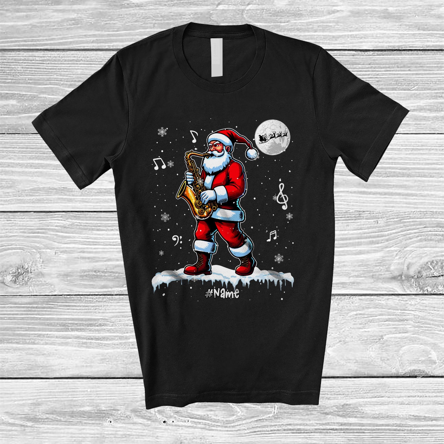 Personalized Santa Playing Saxophone; Merry Christmas Custom Name Saxophone Musical Player T-Shirt