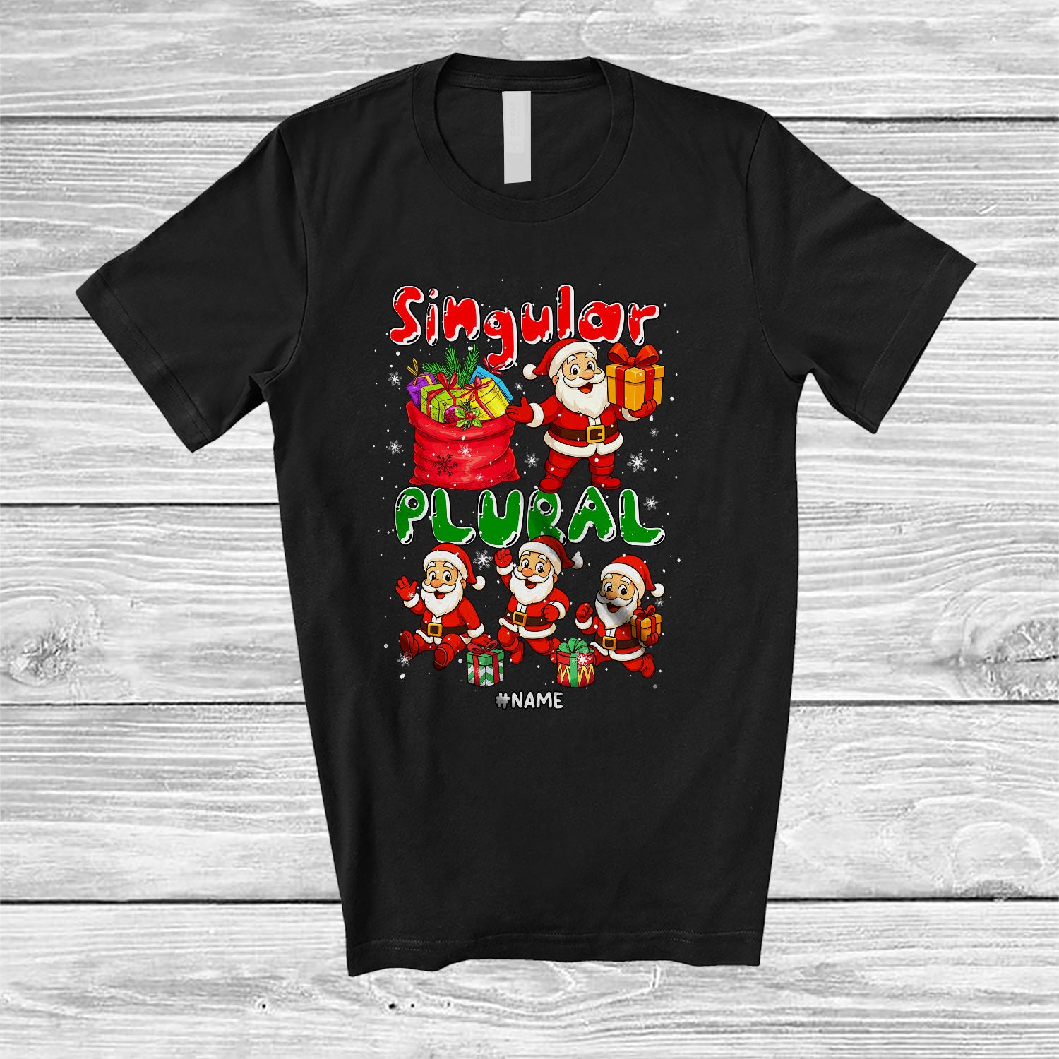 Personalized Singular Plural; Adorable Christmas Four Santa; Custom Name Grammar Teacher T-Shirt