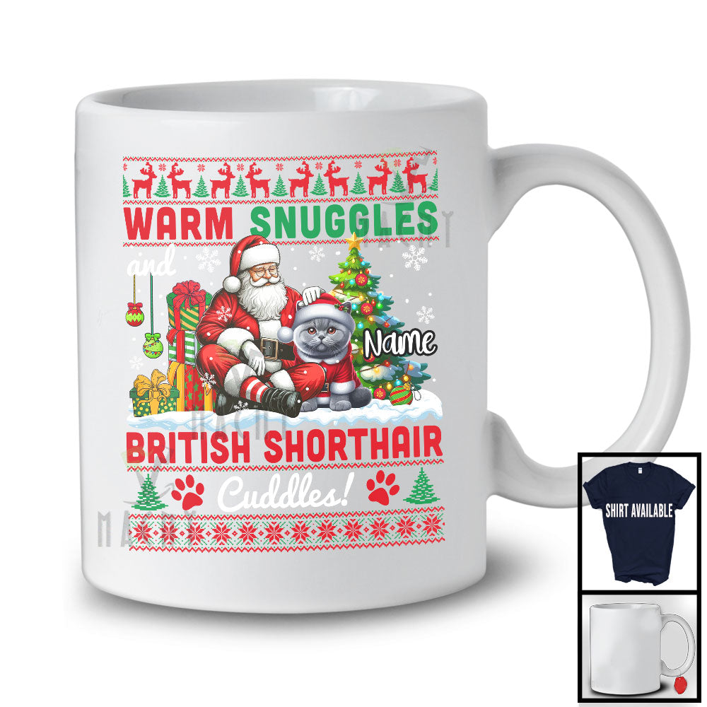 Personalized Warm Snuggles British Shorthair Cuddles, Lovely Christmas Sweater Custom Name Santa T-Shirt