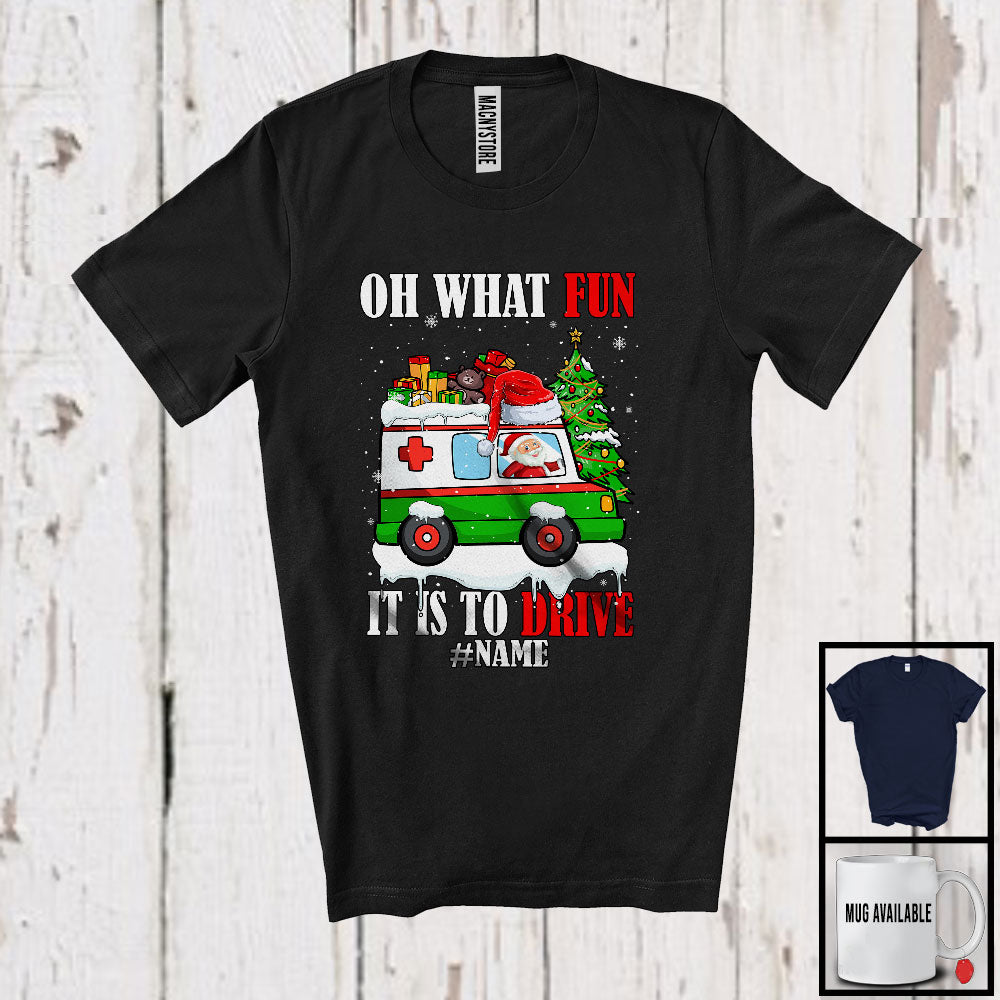 Personalized What Fun To Drive; Humorous Christmas Santa Ambulance; Custom Name Driver T-Shirt