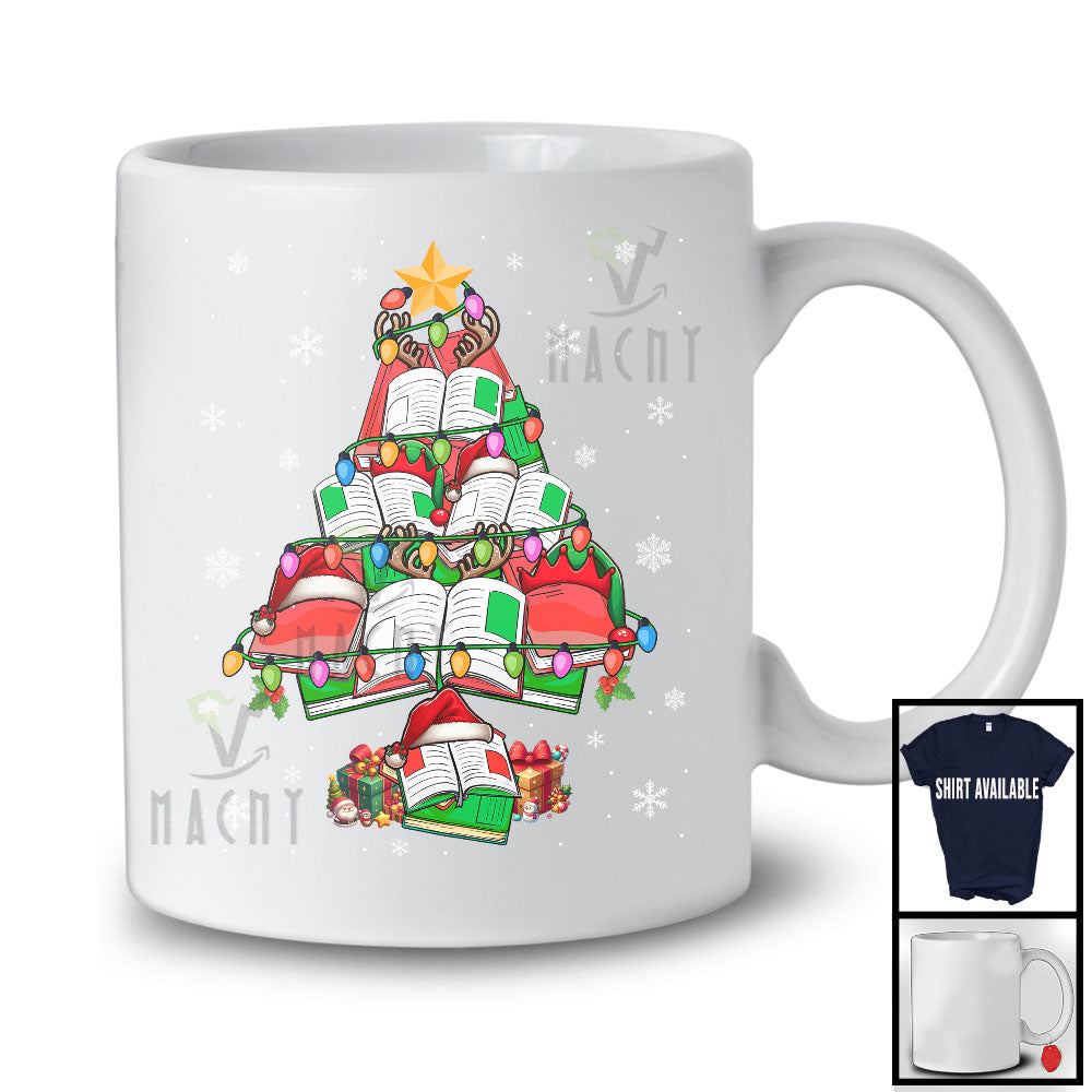 Reindeer Elf Santa Books Christmas Tree; Amazing X-mas Lights Reading Reader; Librarian Teacher T-Shirt