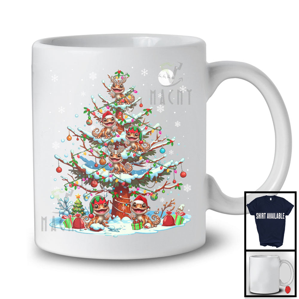 Reindeer Santa Elf Raccoon Christmas On Tree; Joyful Christmas Lights Gecko; Animal Lover T-Shirt