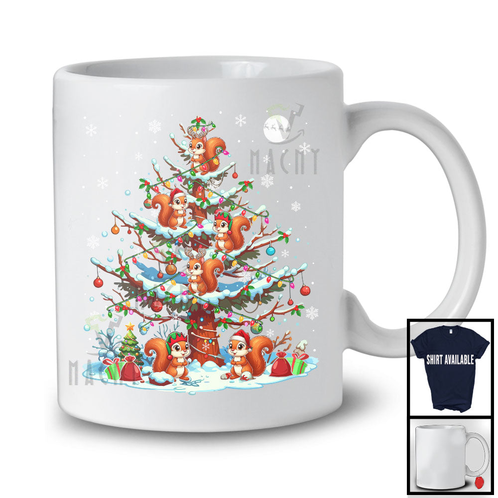 Reindeer Santa Elf Squirrel Christmas On Tree; Joyful Christmas Lights Squirrel; Animal Lover T-Shirt