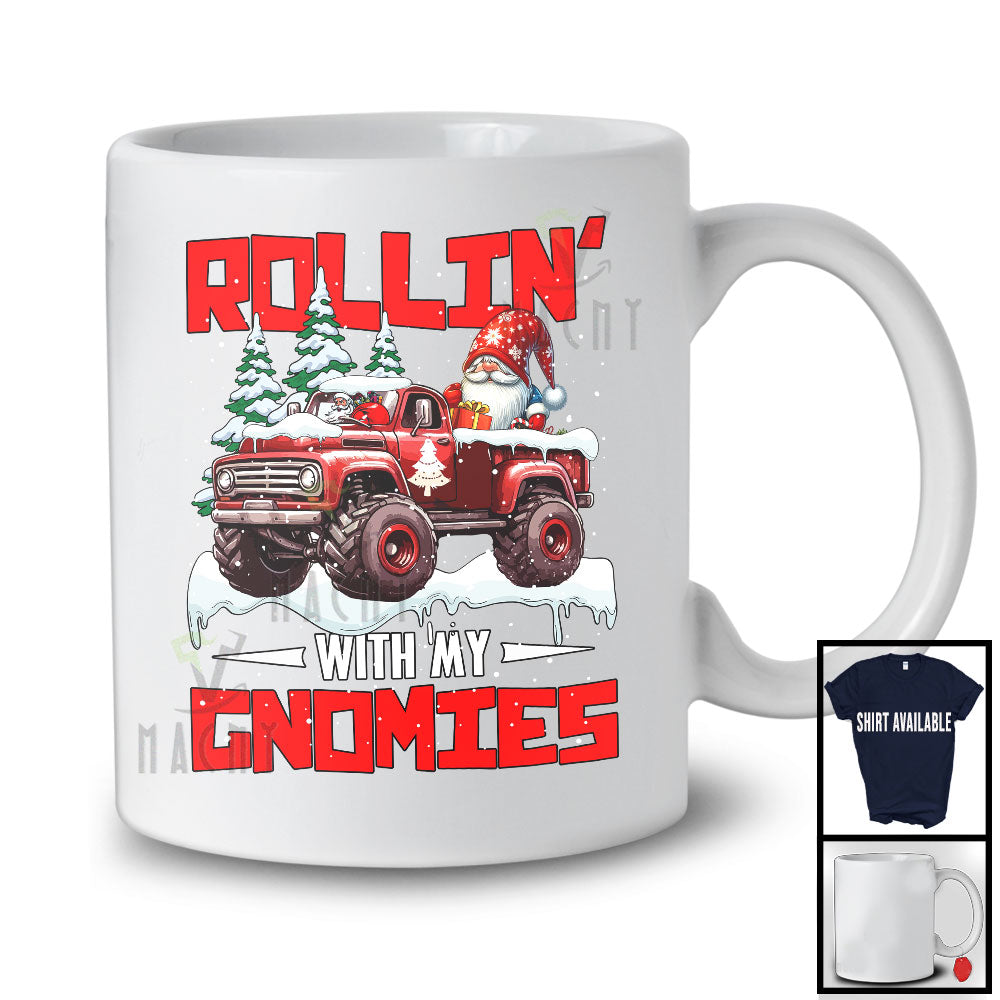 Rollin' With My Gnomies; Amazing Christmas Gnome Driving Pickup Santa; Family Group T-Shirt. This cotton t-shirt is a durable staple product with a classic fit. One of the most popular items, it has a relaxed style made for everyday and casual wear.