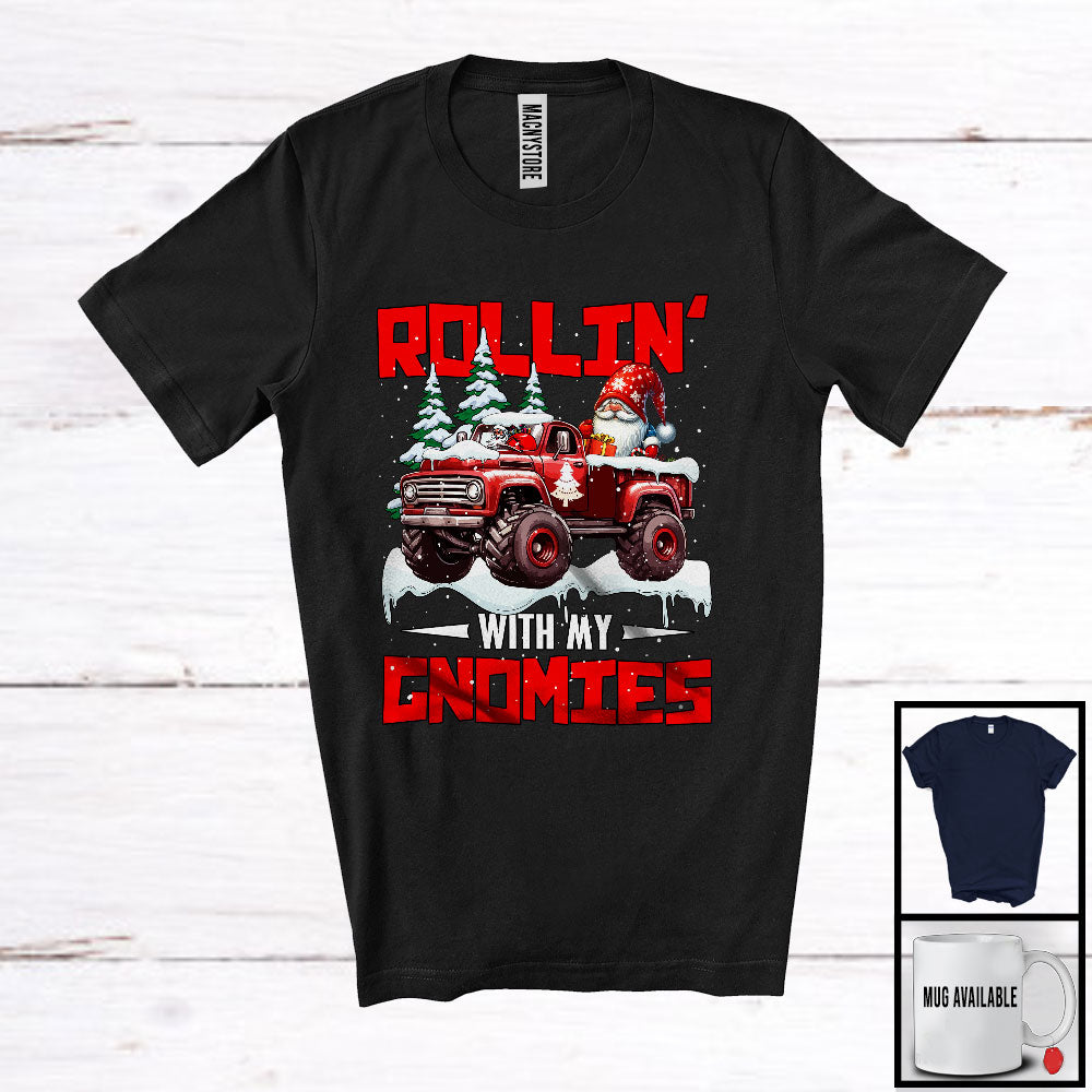 Rollin' With My Gnomies; Amazing Christmas Gnome Driving Pickup Santa; Family Group T-Shirt