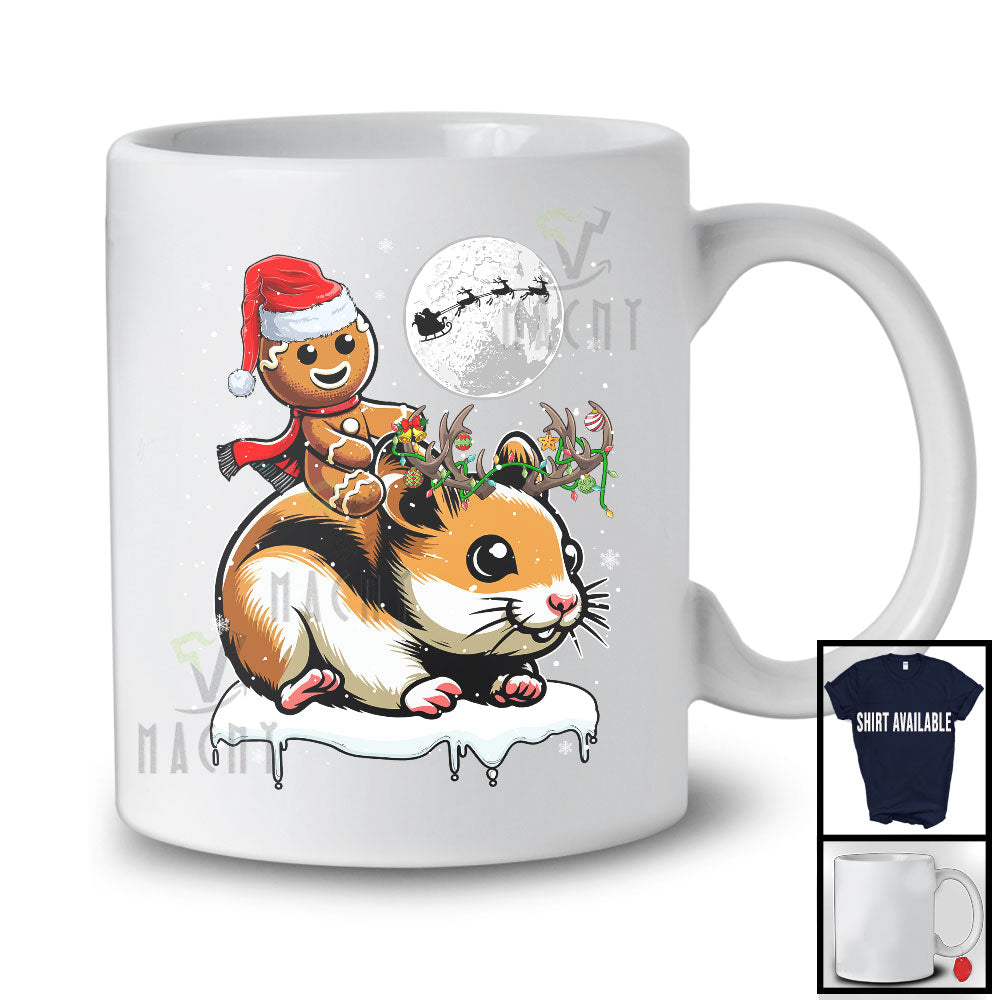 Santa Gingerbread Riding Hamster Reindeer; Lovely Christmas Snowing Wild Animal; Family Group T-Shirt. This cotton t-shirt is a durable staple product with a classic fit. One of the most popular items, it has a relaxed style made for everyday and casual wear.
