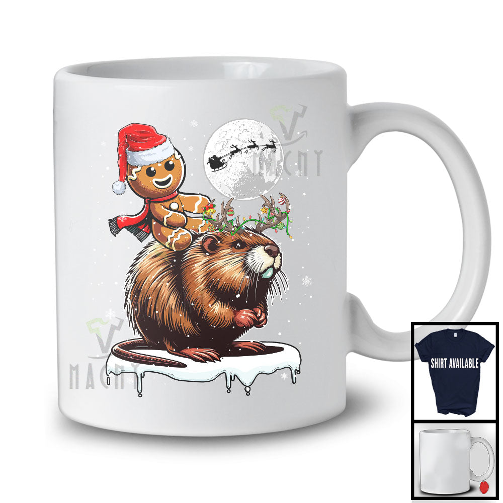 This Santa Gingerbread Riding Muskrat Reindeer; Lovely Christmas Snowing Wild Animal; Family Group T-Shirt is great idea gift for your family, friends in this birthday, christmas, mother's day, father's day, patrick's day or any holiday.