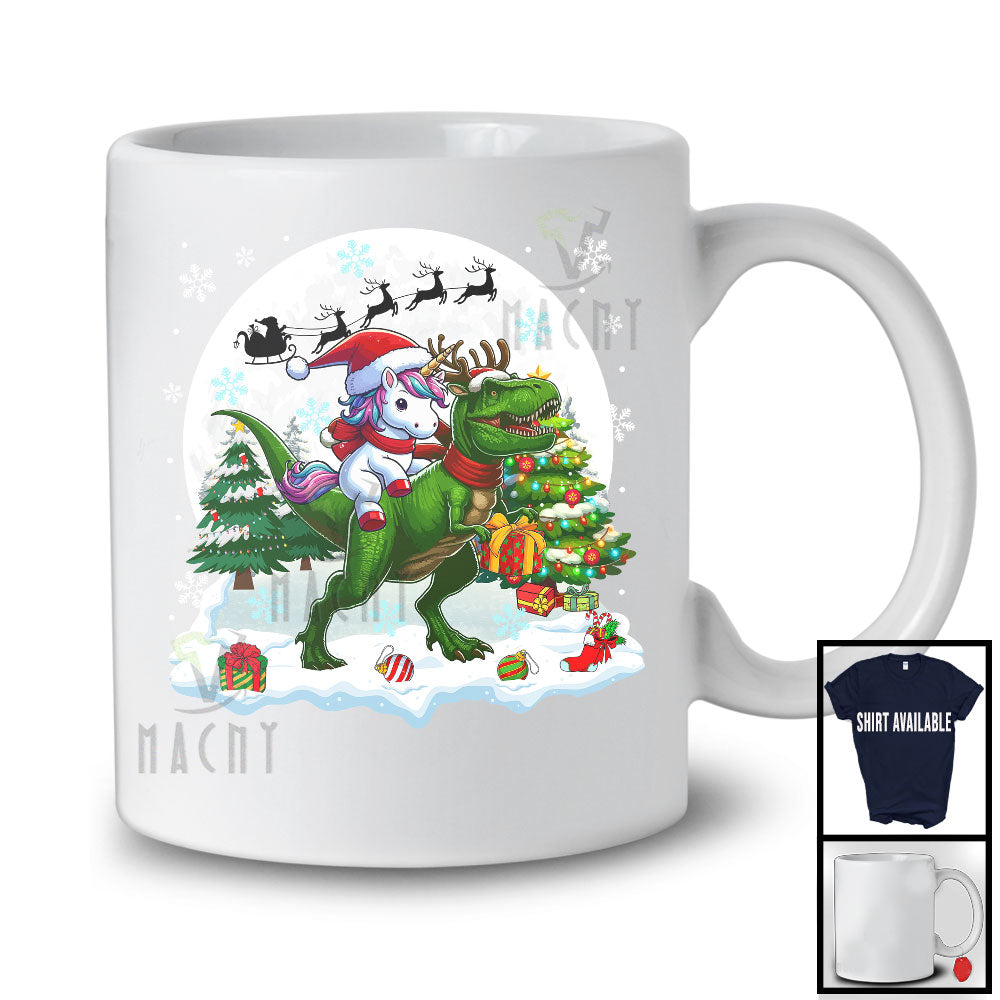 Santa Unicorn Riding T-Rex Reindeer; Amazing Christmas Moon T-Rex Animal Lover; X-mas Family T-Shirt