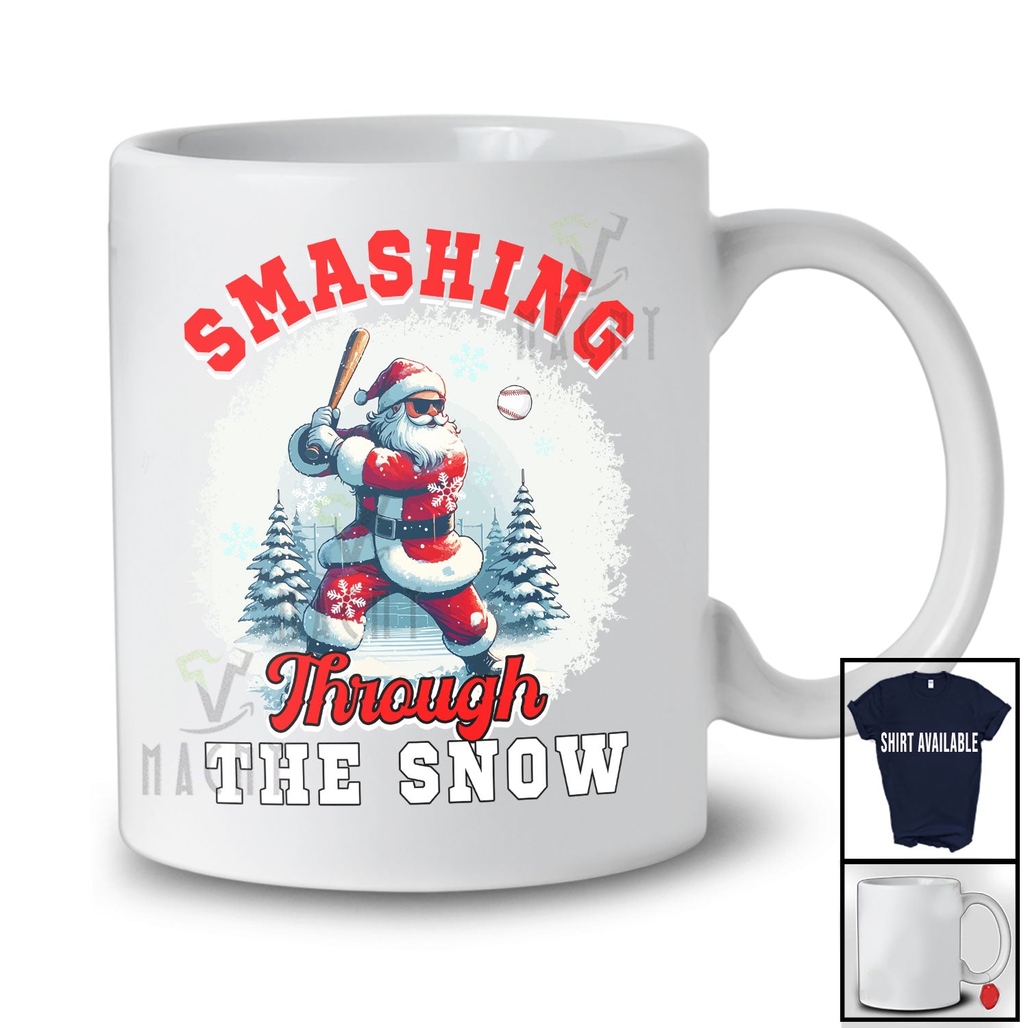 Smashing Through The Snow; Awesome Christmas Santa Baseball Player Team; Snowing Family T-Shirt. This cotton t-shirt is a durable staple product with a classic fit. One of the most popular items, it has a relaxed style made for everyday and casual wear.