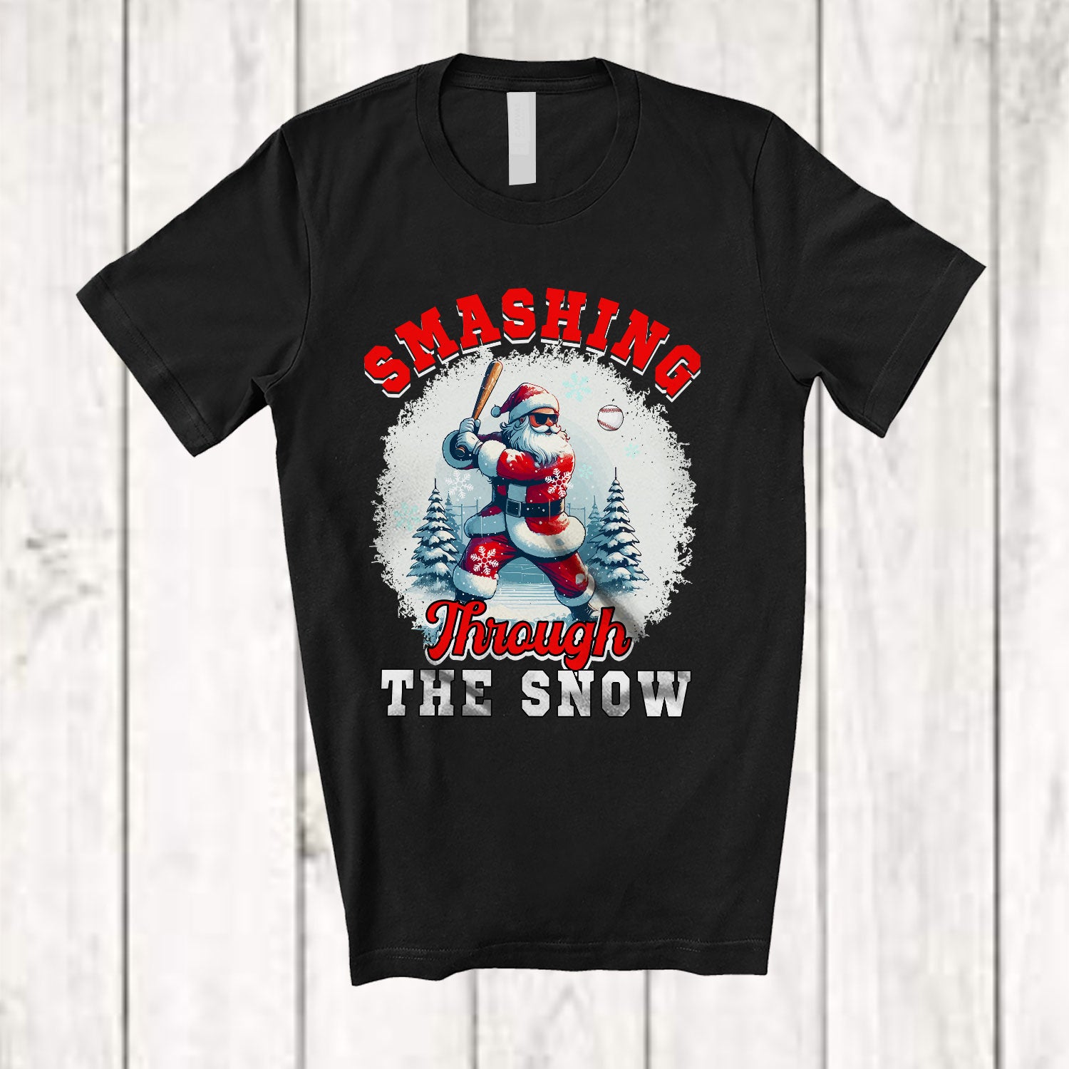 Smashing Through The Snow; Awesome Christmas Santa Baseball Player Team; Snowing Family T-Shirt