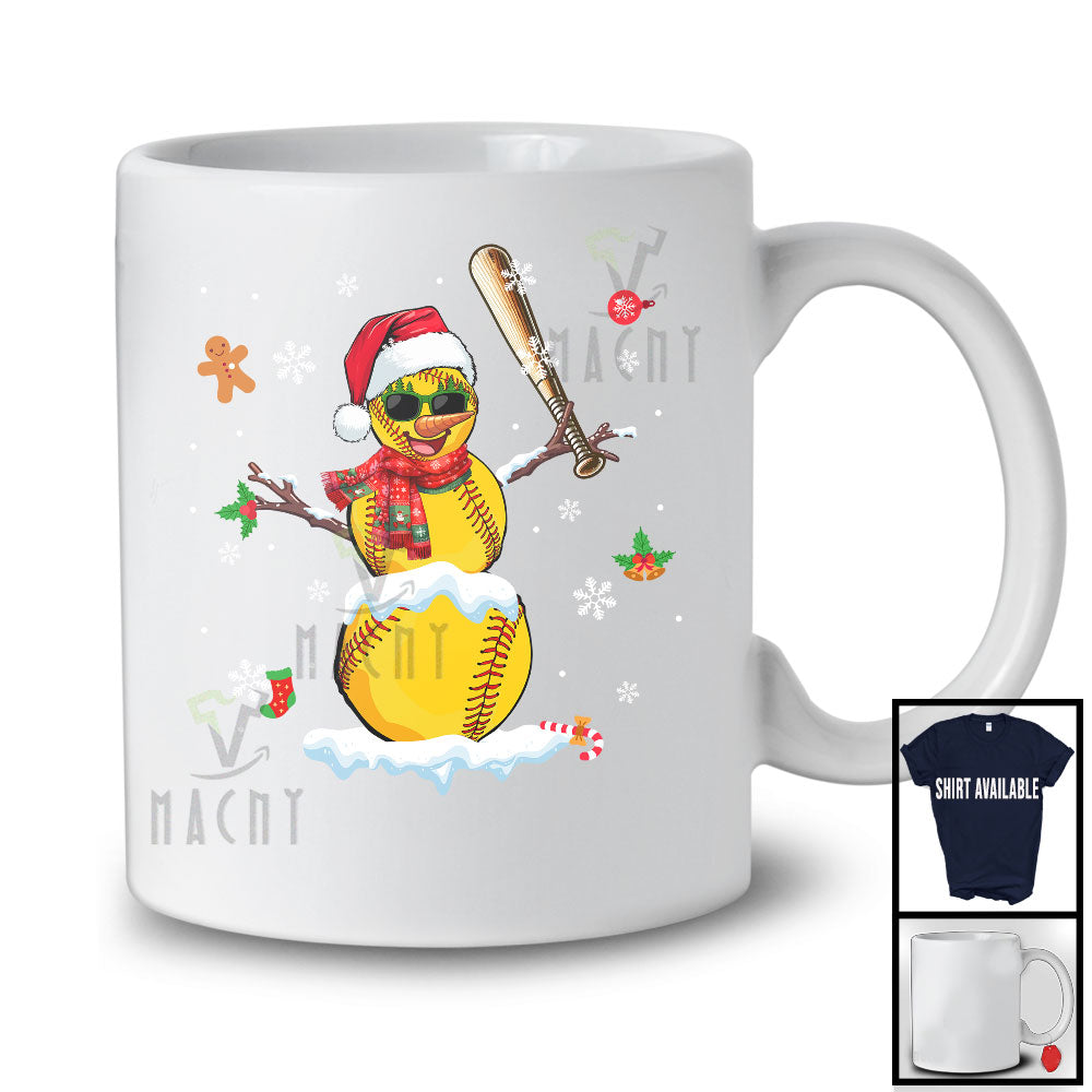 Softball Santa Snowman Cosplay; Cheerful Christmas Softball Sport Player Playing Team; Snow T-Shirt