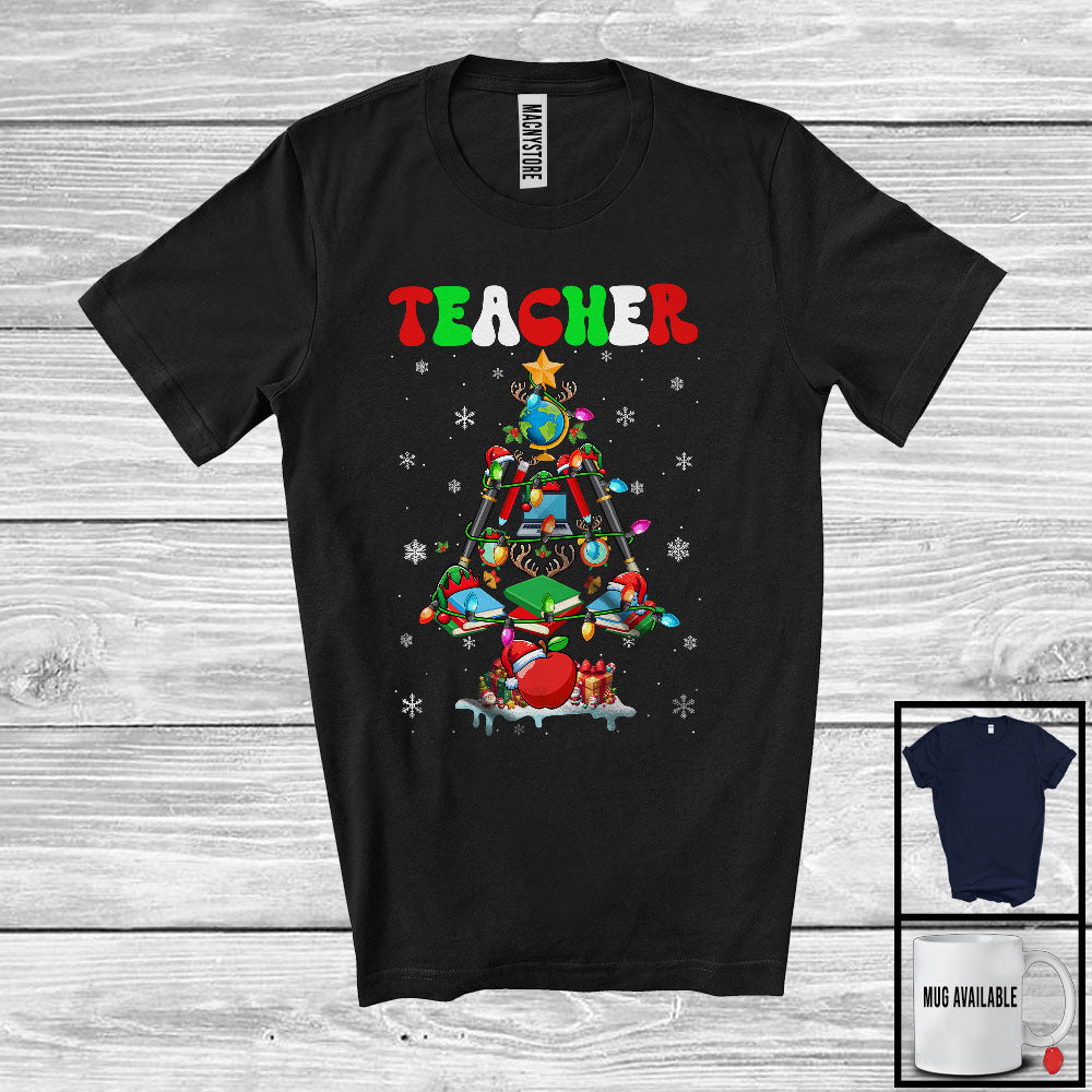 Teacher; Proud Christmas Tree Lights Jobs Careers; X-mas Pajama Family Group T-Shirt. This cotton t-shirt is a durable staple product with a classic fit. One of the most popular items, it has a relaxed style made for everyday and casual wear.