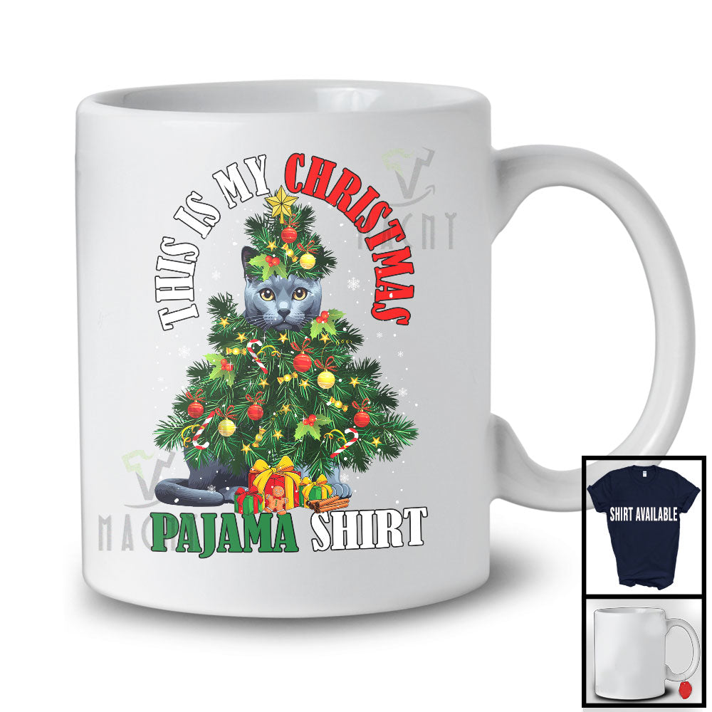 This Is My Christmas Pajama Shirt; Fantastic X-mas Tree Cosplay Russian Blue Cat Owner; Family T-Shirt