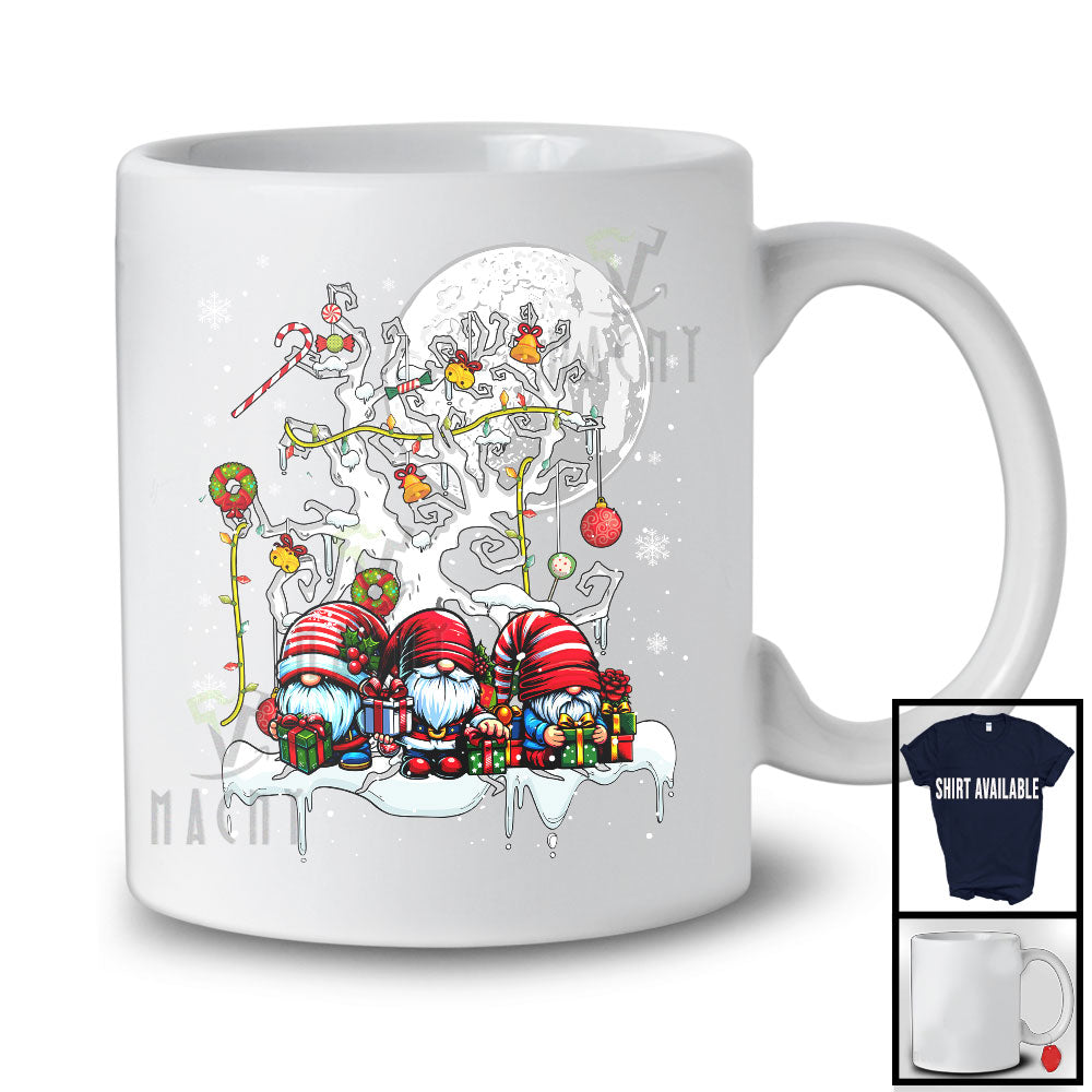 Three Gnomes With X-mas Tree; Lovely Christmas Moon Gnomies Squad; Snowing Around T-Shirt