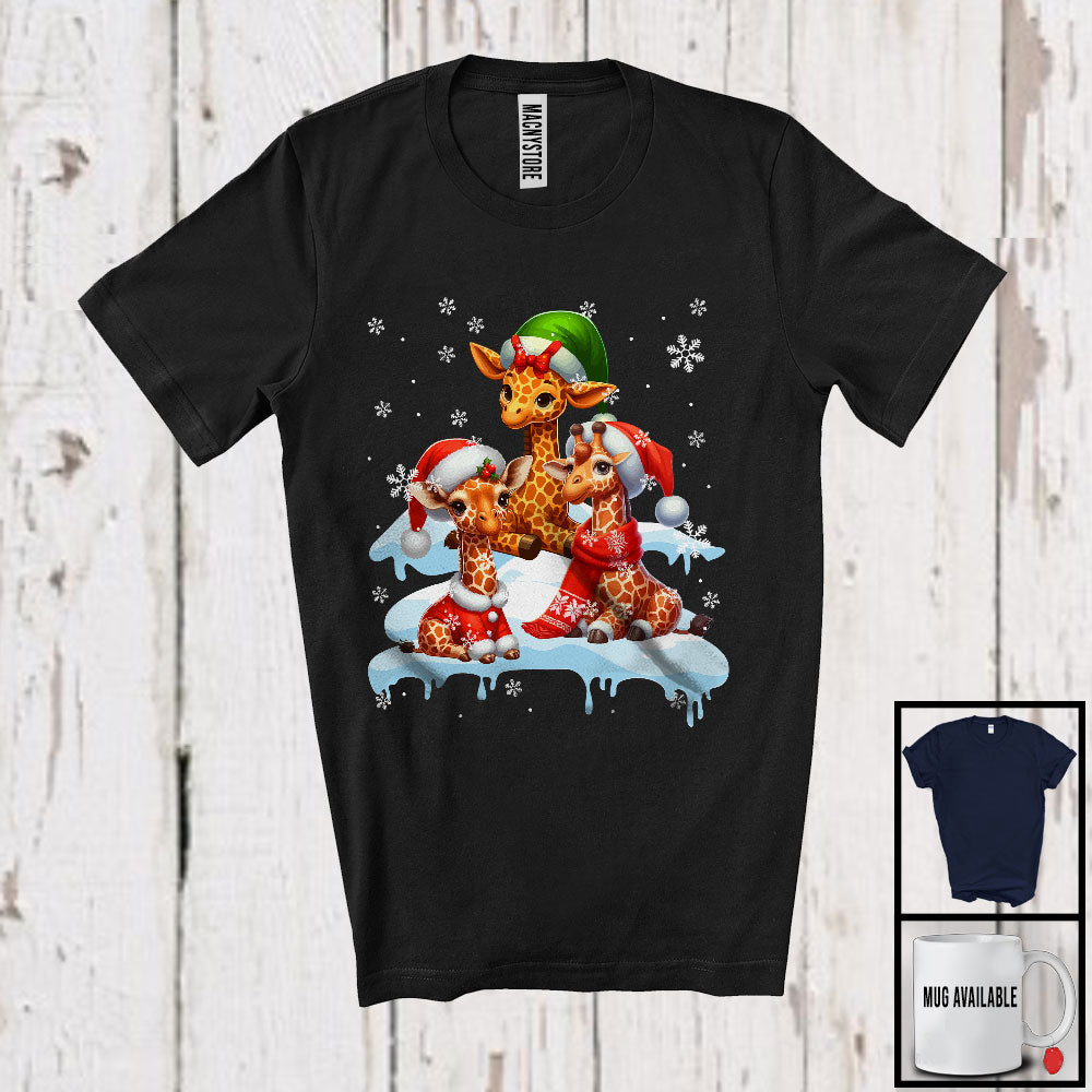 new MacnyStore - Three Santa Elf Giraffes On Snow; Adorable Christmas Snowing Giraffe Lover; Family Group T-Shirt – Macnystore