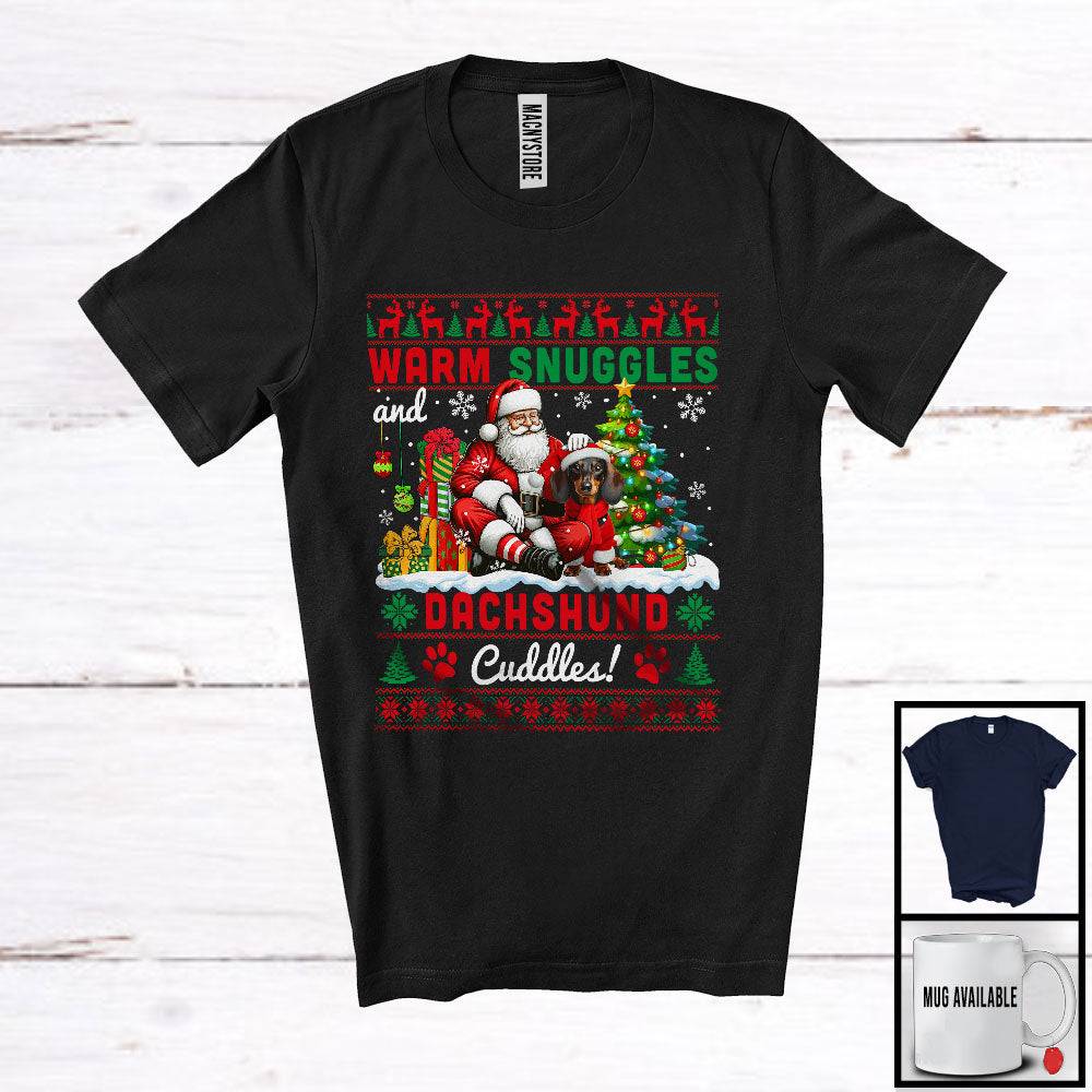 Warm Snuggles And Dachshund Cuddles, Joyful Christmas Santa Dog Owner, Sweater X-mas T-Shirt