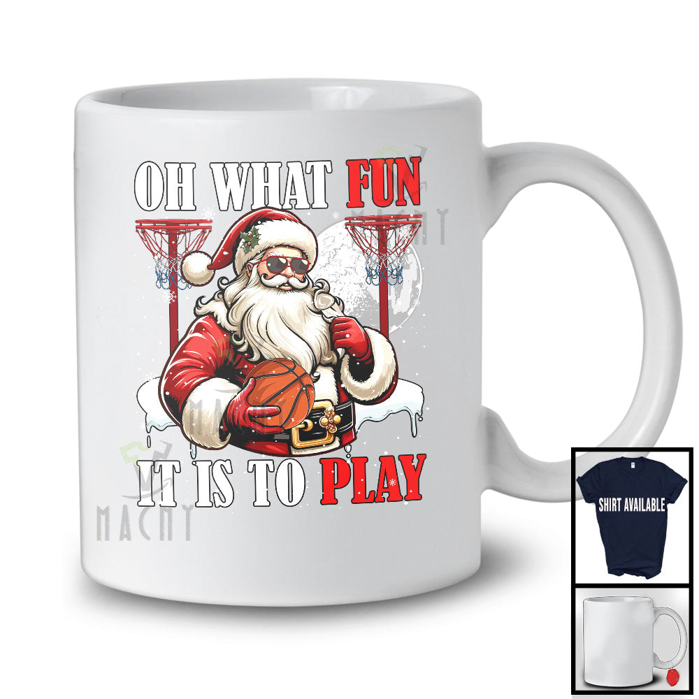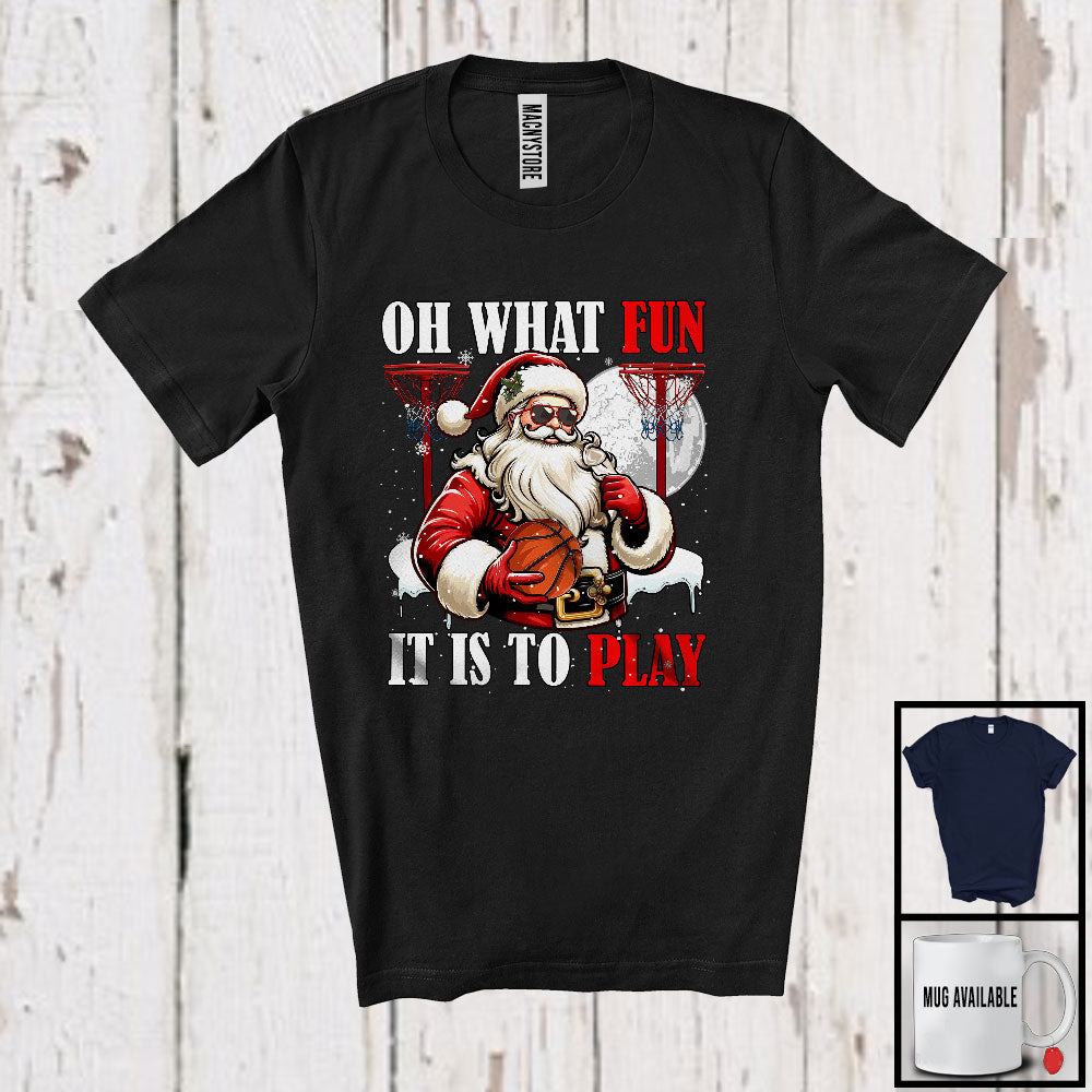 What Fun To Play; Joyful Christmas Moon Santa Basketball Player Playing; X-mas Sport Team T-Shirt