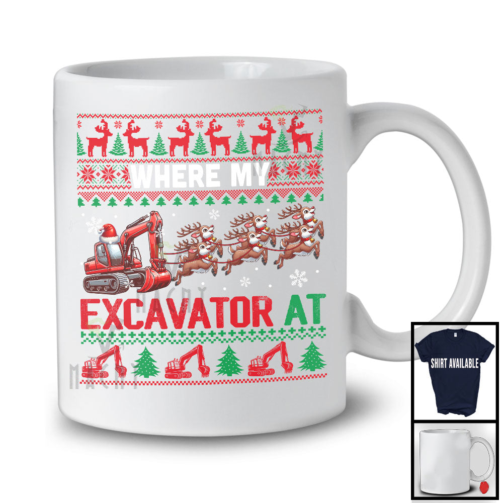 The Where My Excavator At; Humorous Christmas Sweater Santa Reindeer Excavator Driver; X-mas T-Shirt is the product you didn't think you need, but once you have it, something you won't want to live without.