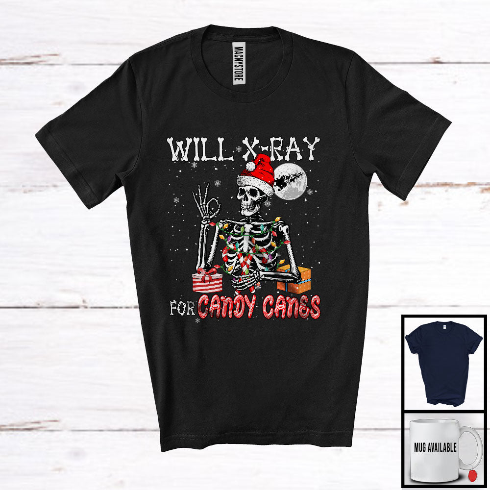 Will X-Ray For Candy Canes; Humorous Christmas Lights Santa Skeleton; Radiology Family T-Shirt