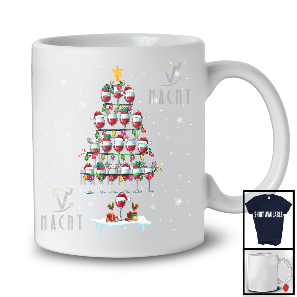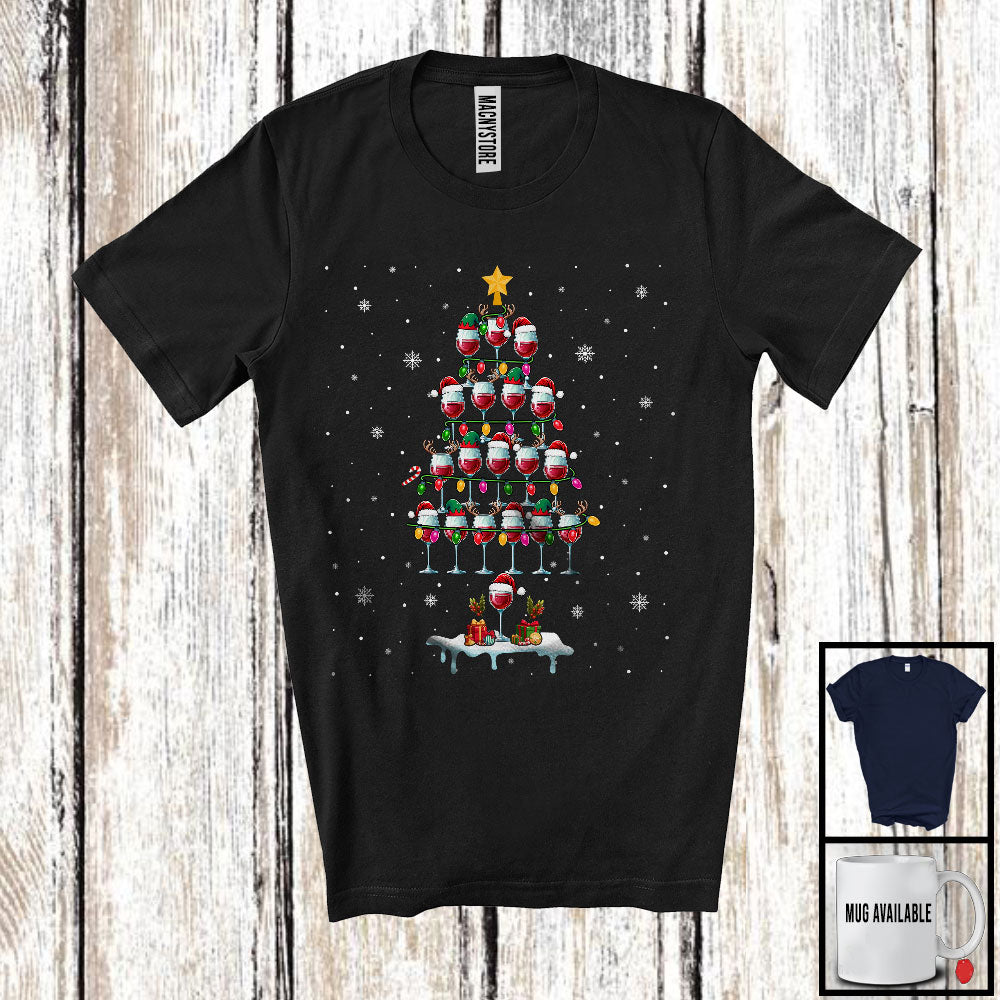 new MacnyStore - Wine Christmas Tree; Cheerful X-mas Lights Santa Elf Wine; Fruit Vegan Snowing T-Shirt – Macnystore