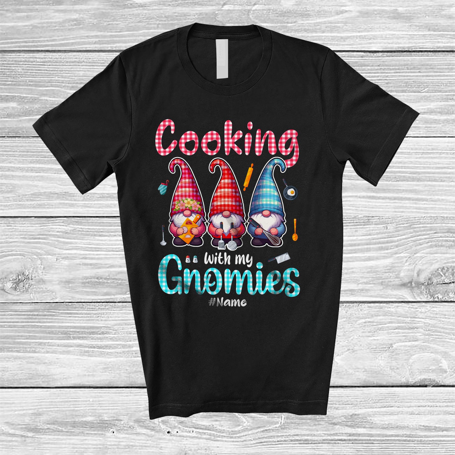 Personalized Cooking With My Gnomies; Joyful Valentine 3 Gnomes; Custom Name Lunch Lady Chef T-Shirt