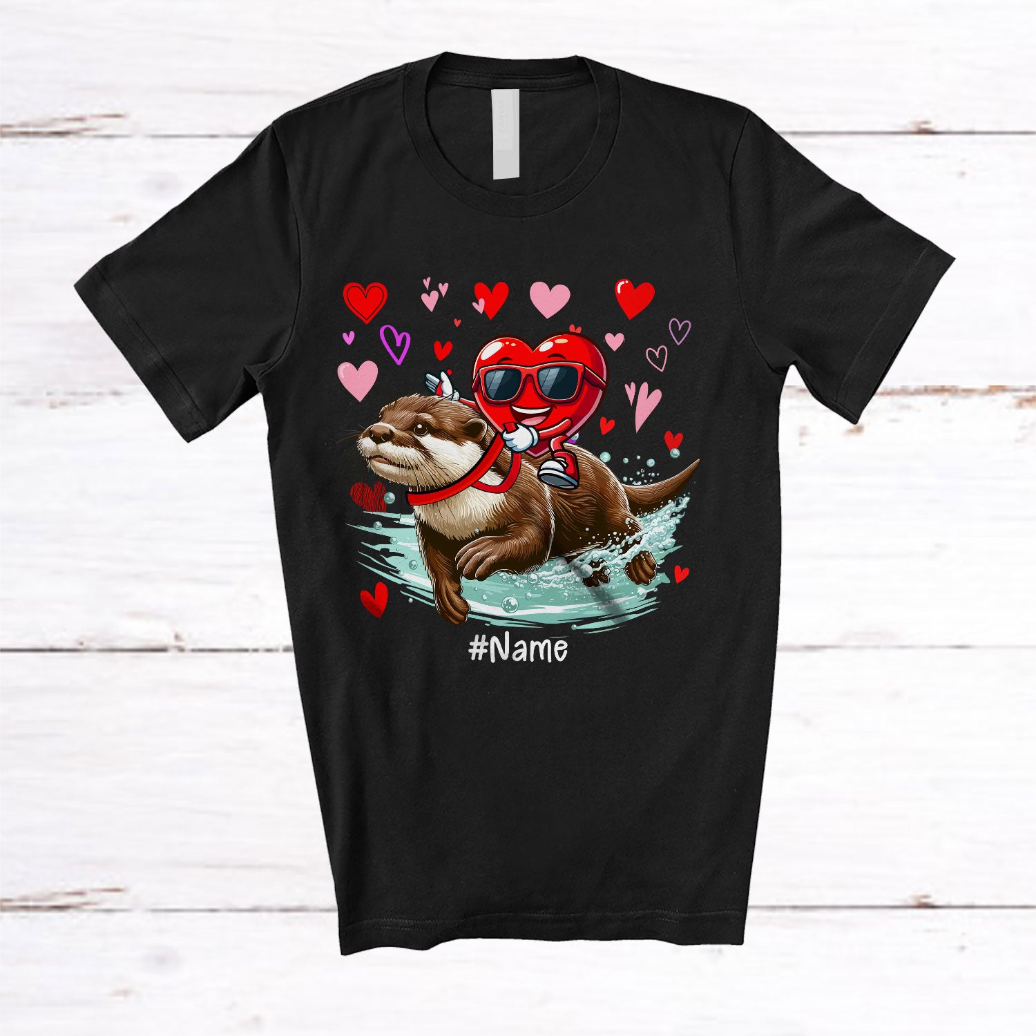 Personalized Custom Name Heart Riding Otter; Joyful Valentine Hearts Sunglasses; Sea Animal T-Shirt