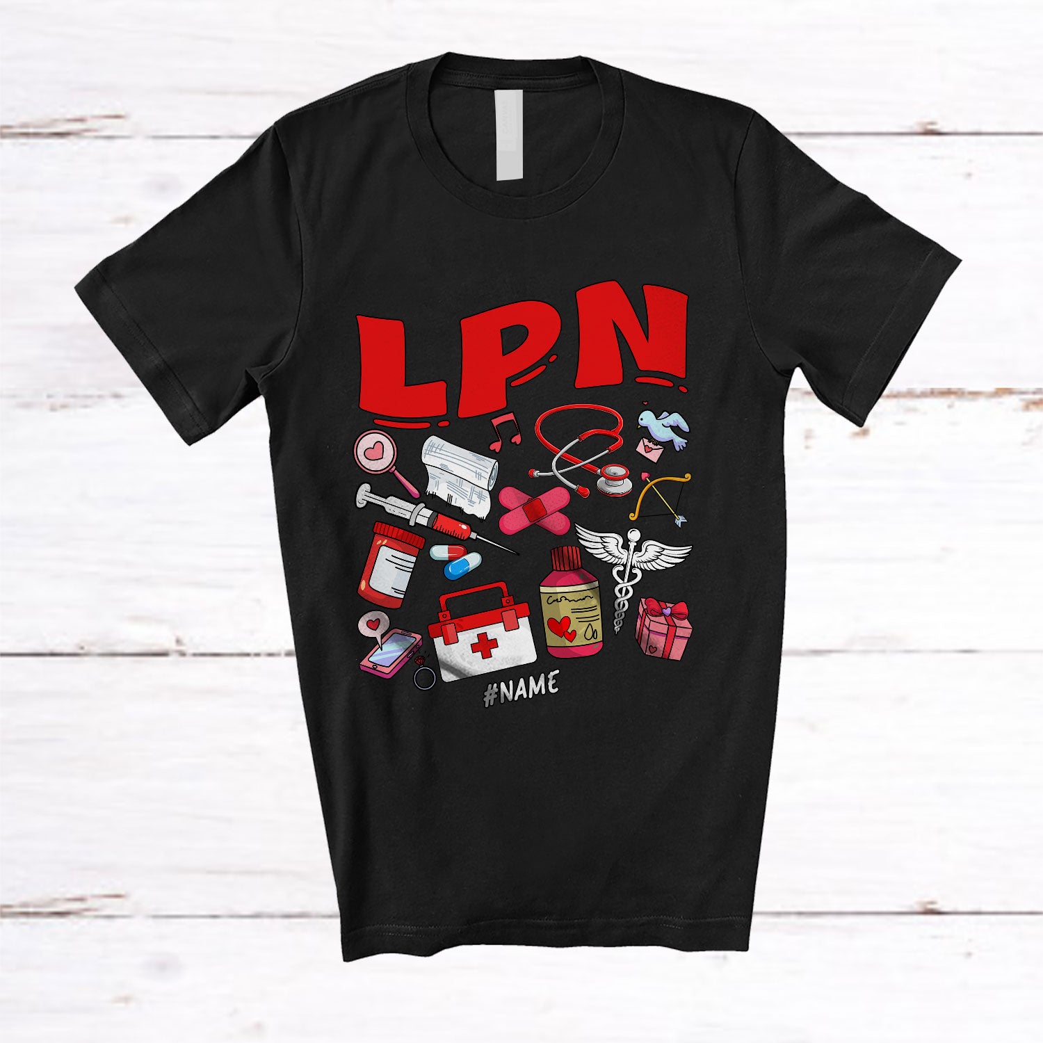 Personalized Custom Name LPN; Wonderful Valentine LPN Nurse Tools; Hearts Nursing T-Shirt. This cotton t-shirt is a durable staple product with a classic fit. One of the most popular items, it has a relaxed style made for everyday and casual wear.
