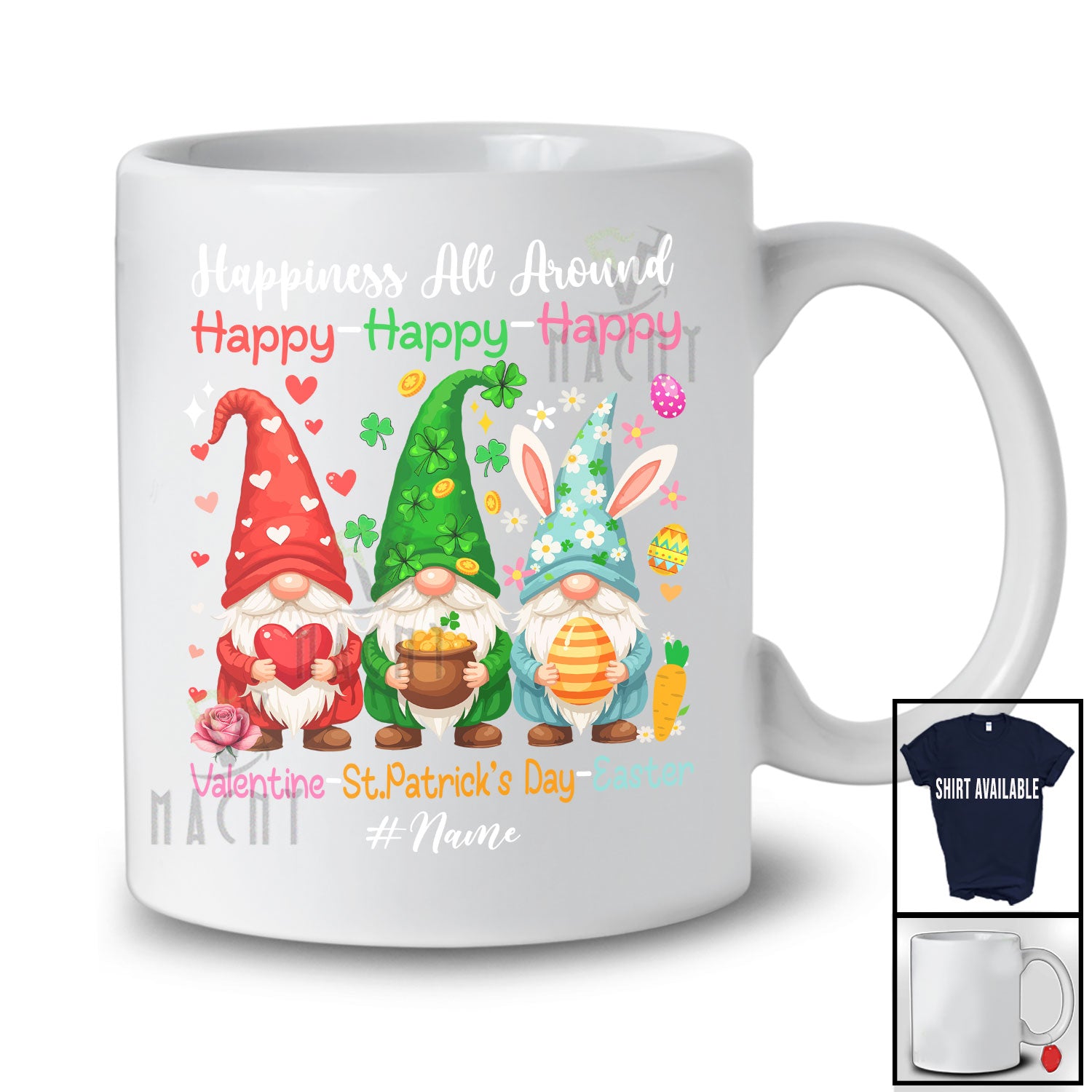 Life is too short to live without the Personalized Happiness; Lovely Valentine Saint Patrick's Day Easter Custom Name Gnomes T-Shirt. Be happy. Be Content. Be Satisfied.