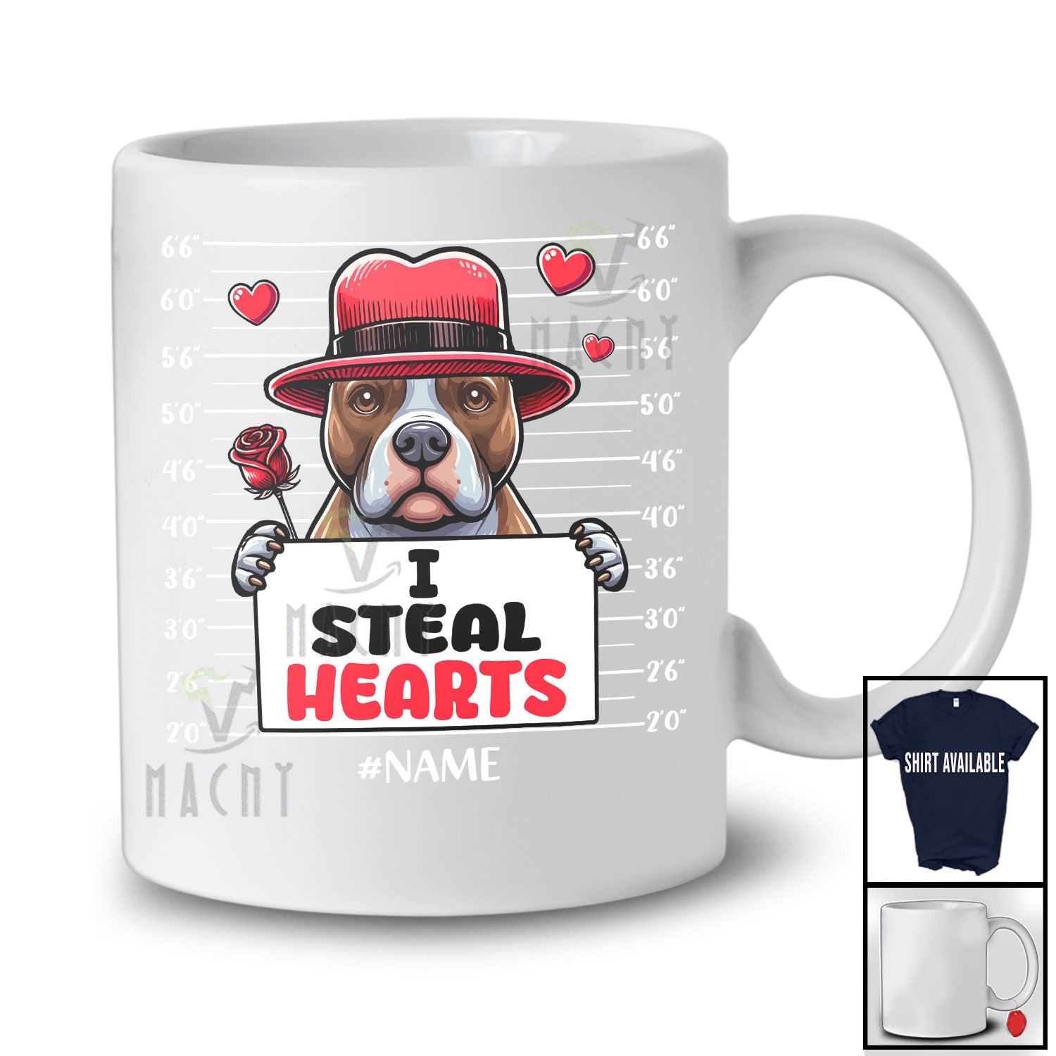 • Personalized I Steal Hearts; Lovely Valentine Custom Name Pit Bull Owner; Family Group T-Shirt. This cotton t-shirt is a durable staple product with a classic fit. One of the most popular items, it has a relaxed style made for everyday and casual wear.