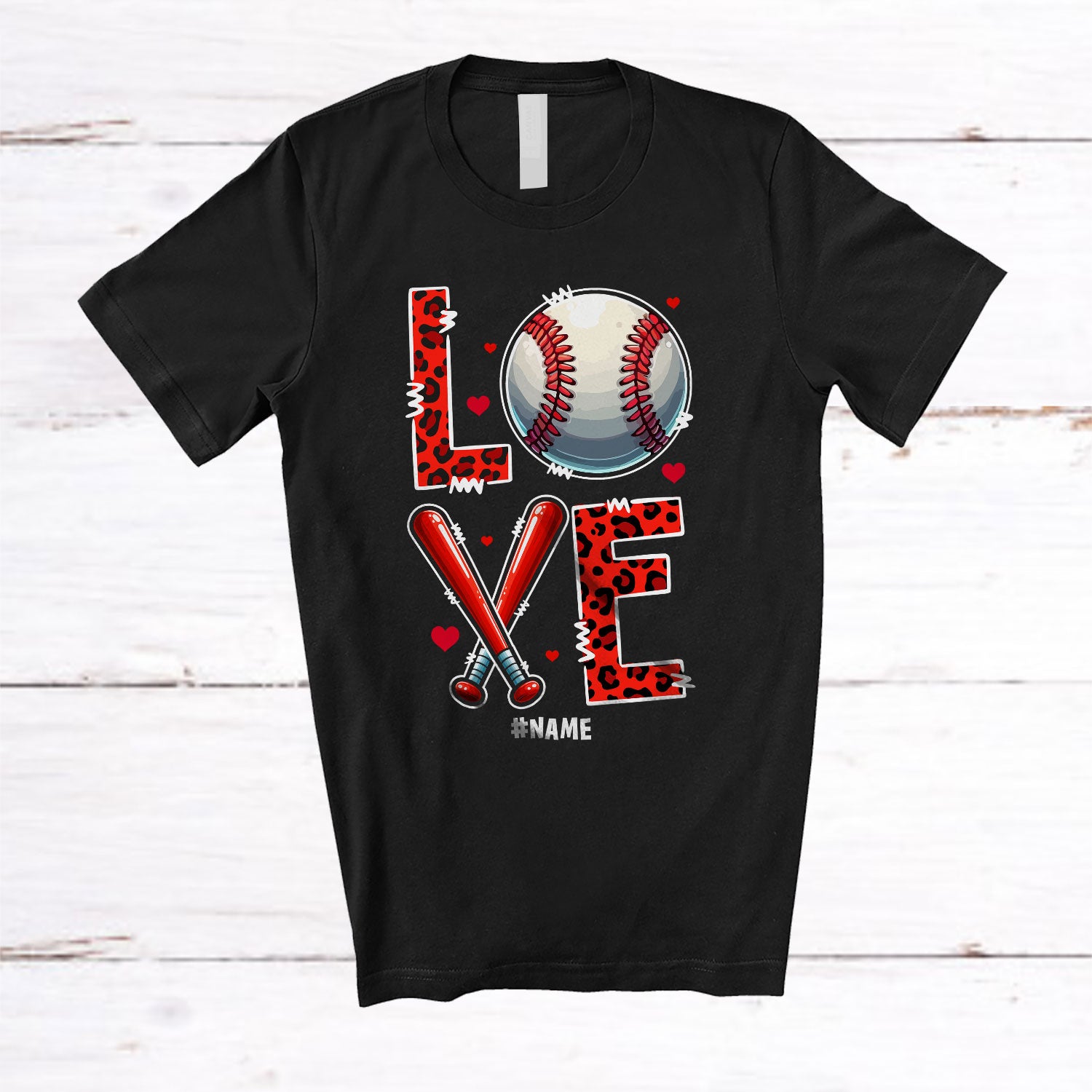 Personalized Love; Joyful Valentine's Day Custom Name Baseball Player; Leopard Hearts T-Shirt. This cotton t-shirt is a durable staple product with a classic fit. One of the most popular items, it has a relaxed style made for everyday and casual wear.