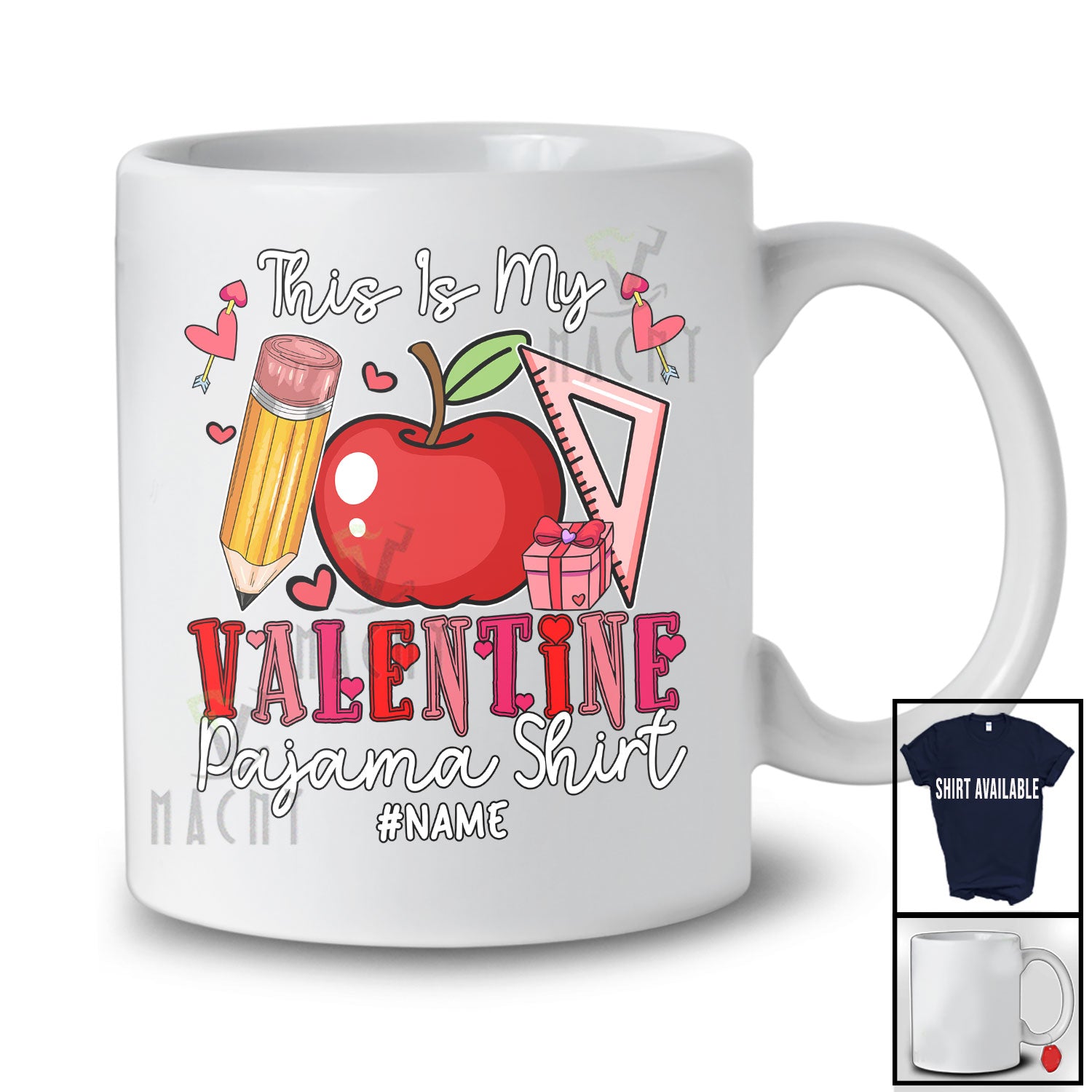 Personalized My Valentine Pajama Shirt; Amusing Custom Name Teacher Hearts; Couple Family T-Shirt. This cotton t-shirt is a durable staple product with a classic fit. One of the most popular items, it has a relaxed style made for everyday and casual wear.
