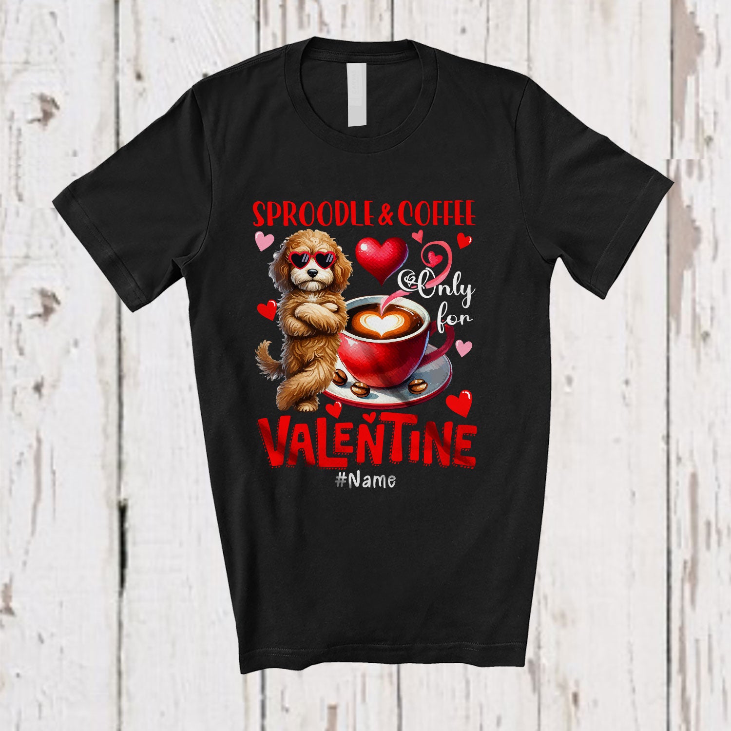 This Personalized Sproodle And Coffee Only For Valentine; Lovely Custom Name Single; Animal T-Shirt is great idea gift for your family, friends in this birthday, christmas, mother's day, father's day, patrick's day or any holiday.