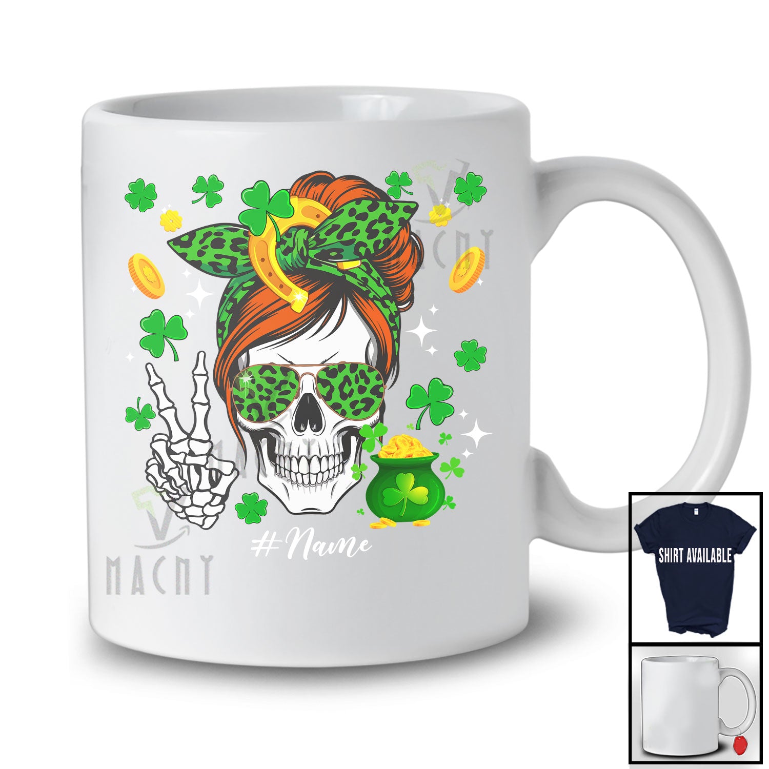 This Personalized Custom Name Skull Messy Bun Hair; Amazing St. Patrick's Day Women Family T-Shirt is great idea gift for your family, friends in this birthday, christmas, mother's day, father's day, patrick's day or any holiday.