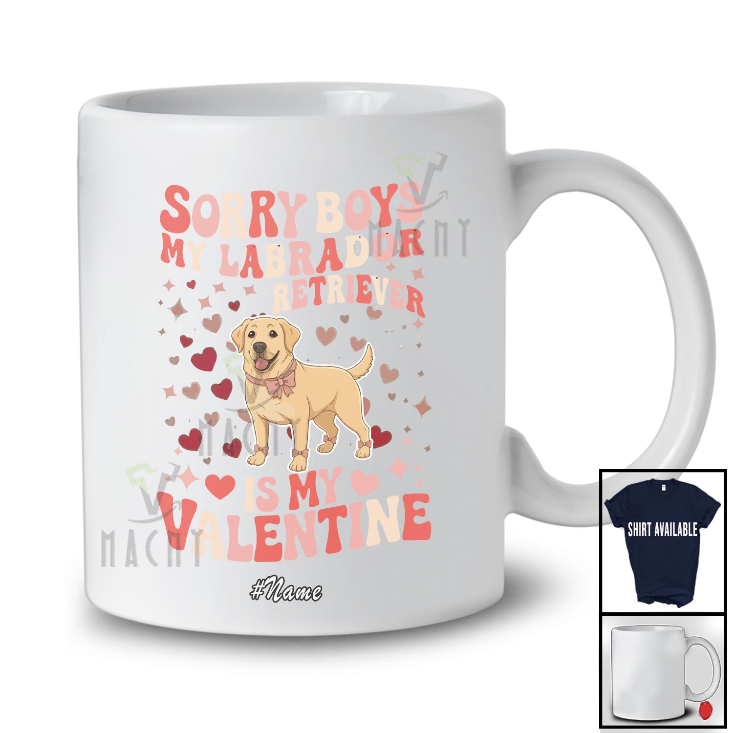 • Personalized Custom Name Sorry Labrador Retriever Is My Valentine; Lovely Hearts Girls Women Family T-Shirt. This cotton t-shirt is a durable staple product with a classic fit. One of the most popular items, it has a relaxed style made for everyday and casual wear.