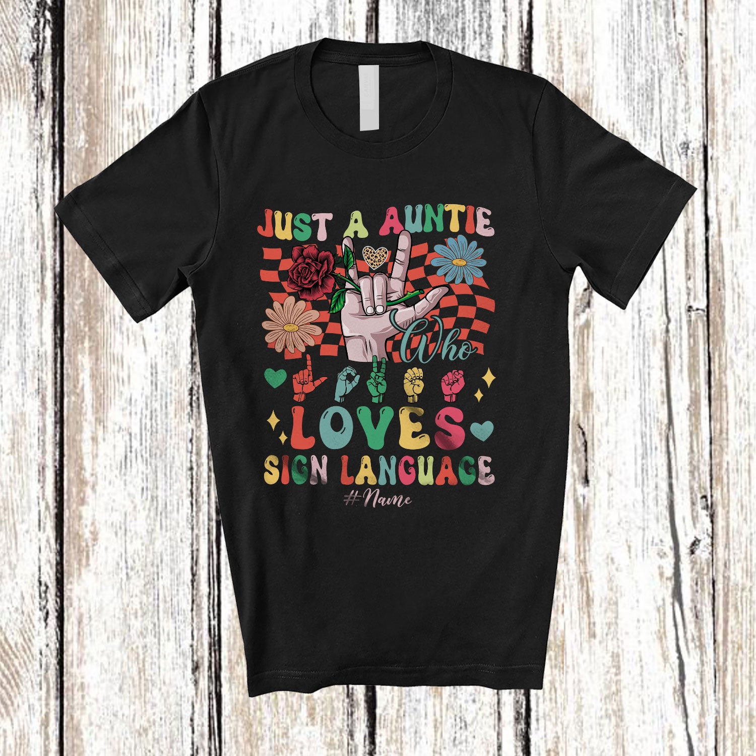The Personalized Just A Auntie Who Loves Sign Language; Lovely Custom Name Women ASL; Family T-Shirt is the yin, to your yang. You've found what you're looking for.