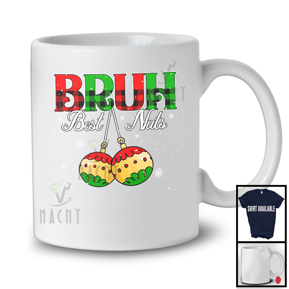Bruh Best Nuts; Amazing Christmas Ornaments Snowing Around; Men Plaid Couple X-mas Family T-Shirt. This cotton t-shirt is a durable staple product with a classic fit. One of the most popular items, it has a relaxed style made for everyday and casual wear.
