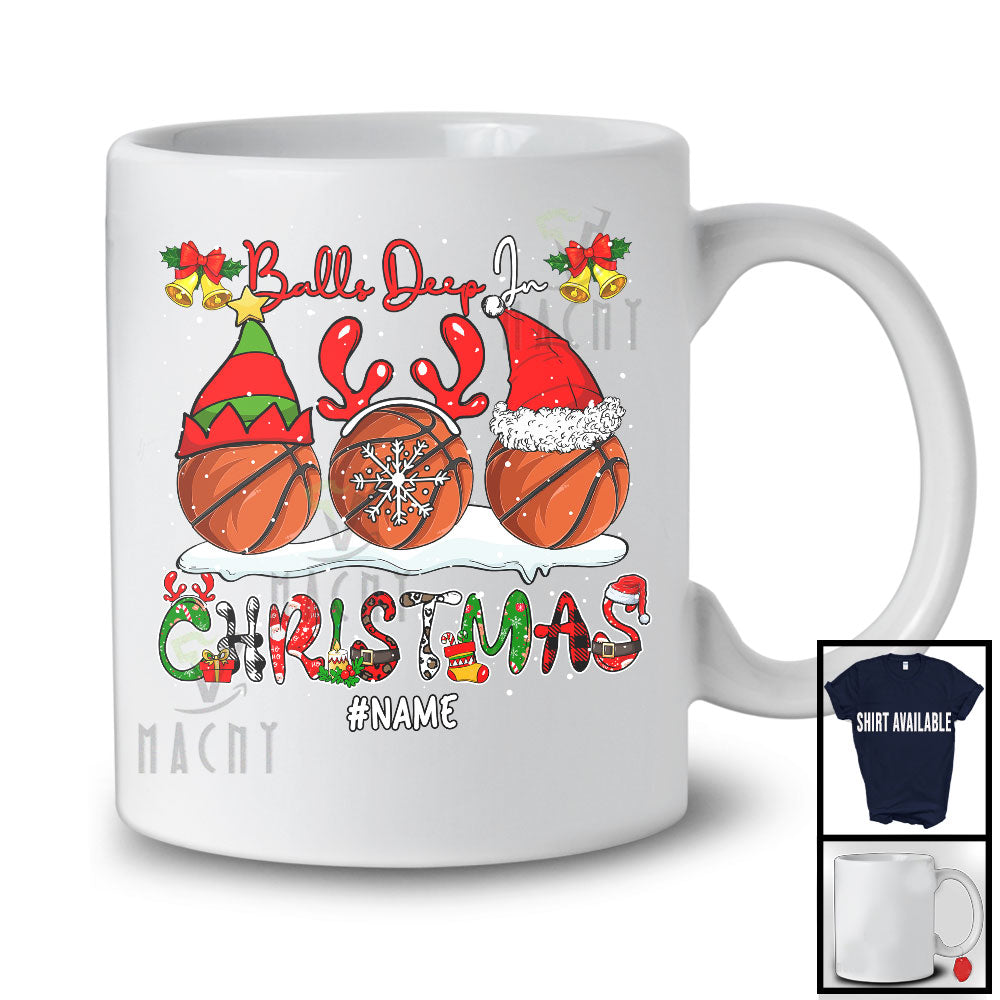 • Personalized Balls Deep In Christmas; Joyful Three Basketball Ornaments; Custom Name Sport Player T-Shirt. This cotton t-shirt is a durable staple product with a classic fit. One of the most popular items, it has a relaxed style made for everyday and casual wear.