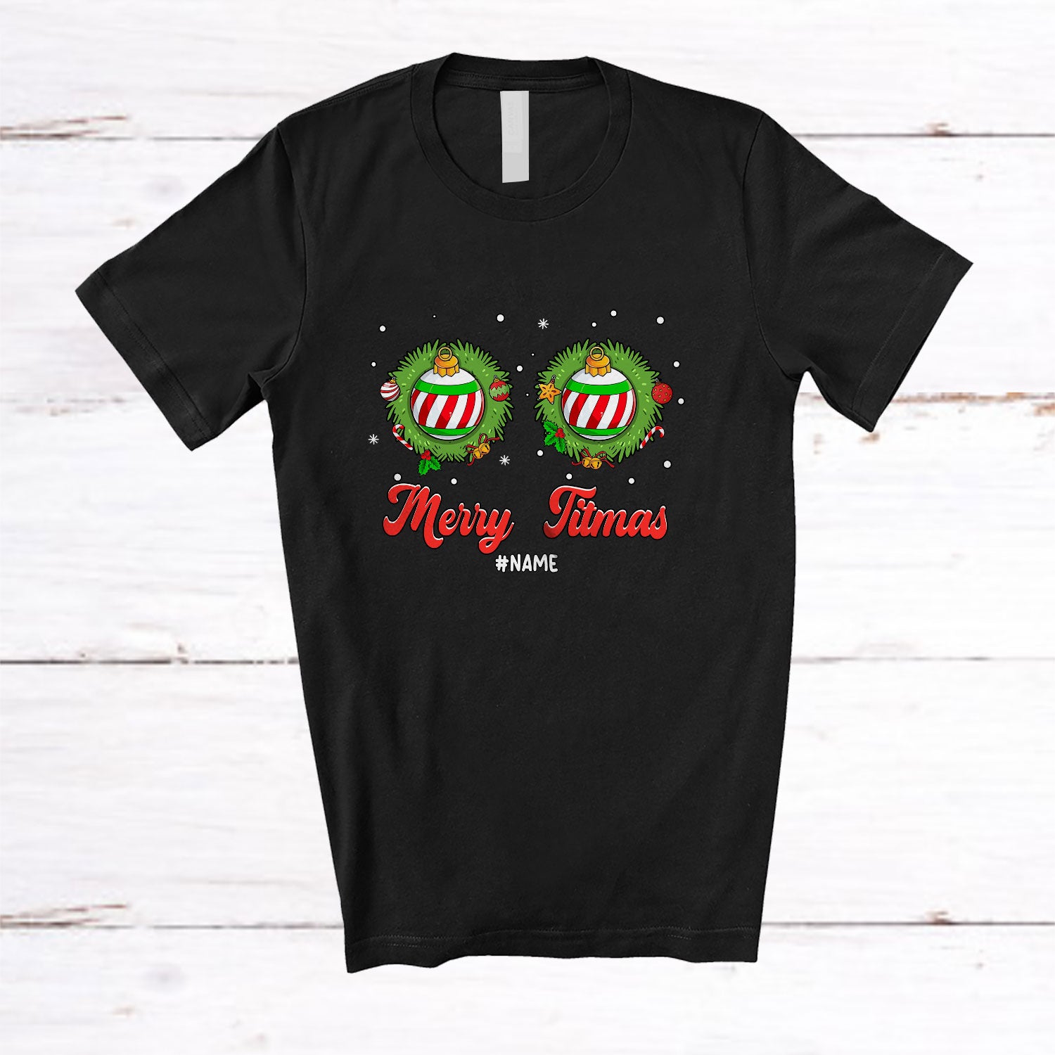 Personalized Custom Name Merry Titmas; Humorous Christmas Women Ornament Boobs Naughty T-Shirt