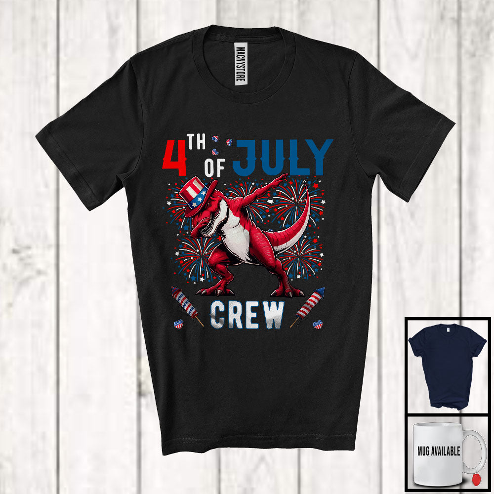4th Of July Crew, Joyful Dabbing T-Rex American Flag Proud, Patriotic Friends Family Group T-Shirt