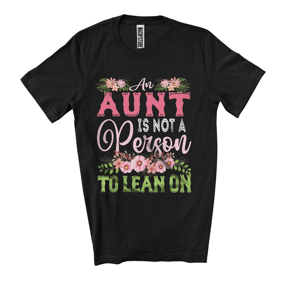 An Aunt Is Not A Person To Lean On, Floral Mother's Day Flowers, Matching Aunt Family T-Shirt. This cotton t-shirt is a durable staple product with a classic fit. One of the most popular items, it has a relaxed style made for everyday and casual wear.