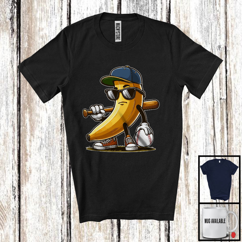 new MacnyStore - Banana Sunglasses Playing Baseball, Humorous Fruit Lover Baseball Player Sport Team T-Shirt – Macnystore