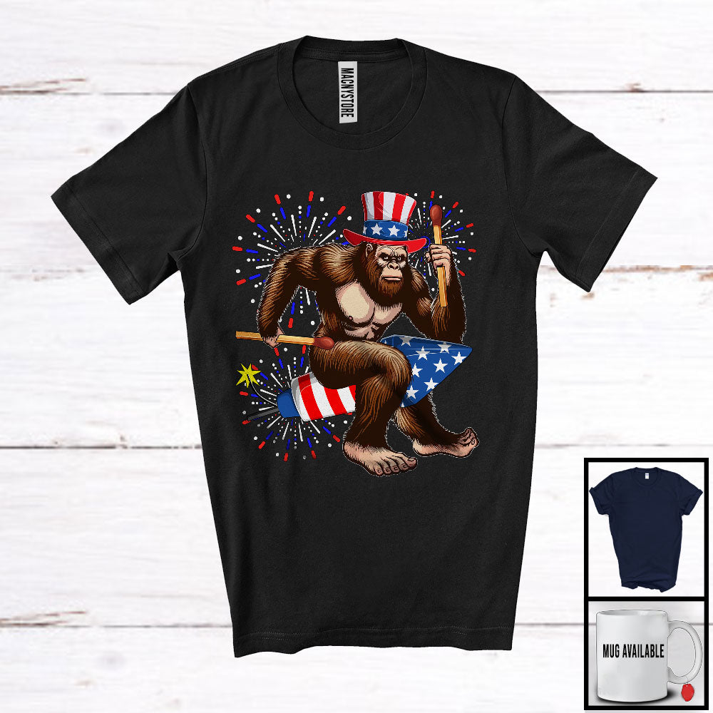 Bigfoot Riding Firecracker, Awesome 4th Of July Fireworks Bigfoot Lover, Patriotic Group T-Shirt