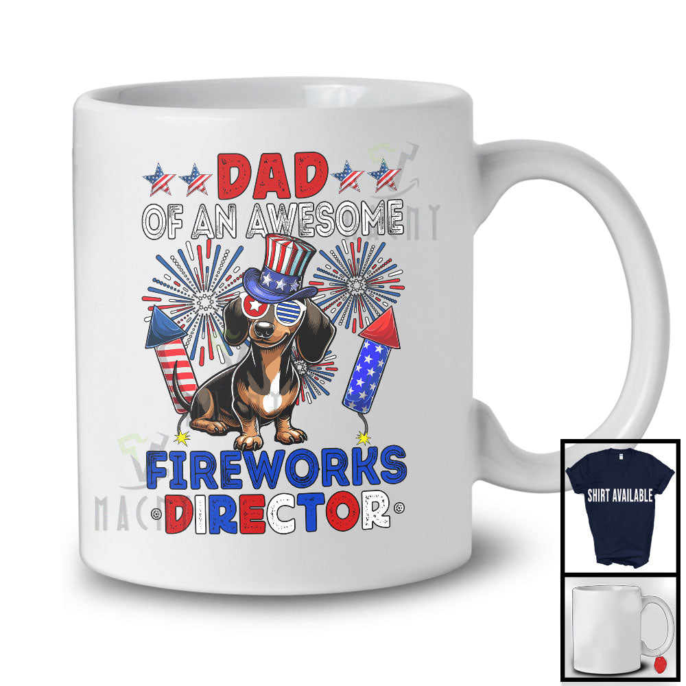 Dad Of An Awesome Fireworks Director, Lovely 4th Of July Dachshund, Fireworks Patriotic T-Shirt. This cotton t-shirt is a durable staple product with a classic fit. One of the most popular items, it has a relaxed style made for everyday and casual wear.