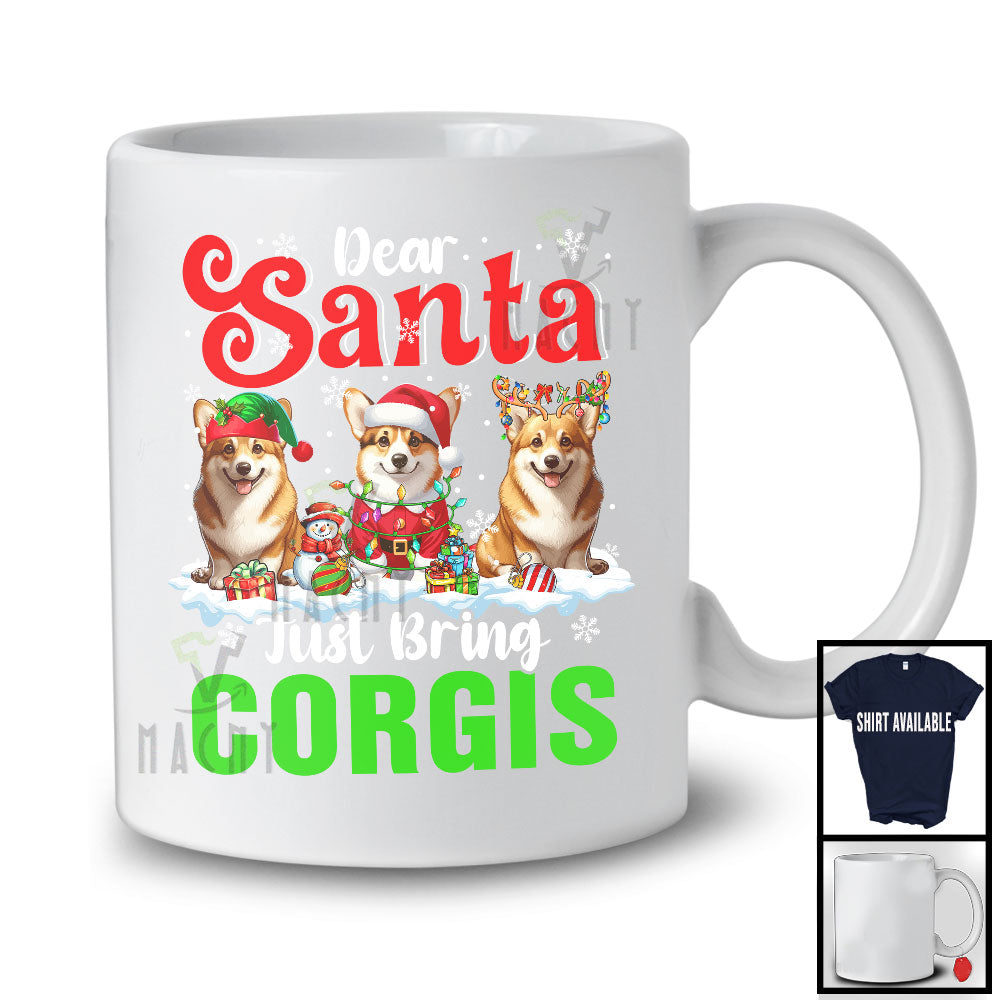 new MacnyStore - Dear Santa Just Bring Corgis; Awesome Christmas Lights Snowing; X-mas Family Group T-Shirt – Macnystore